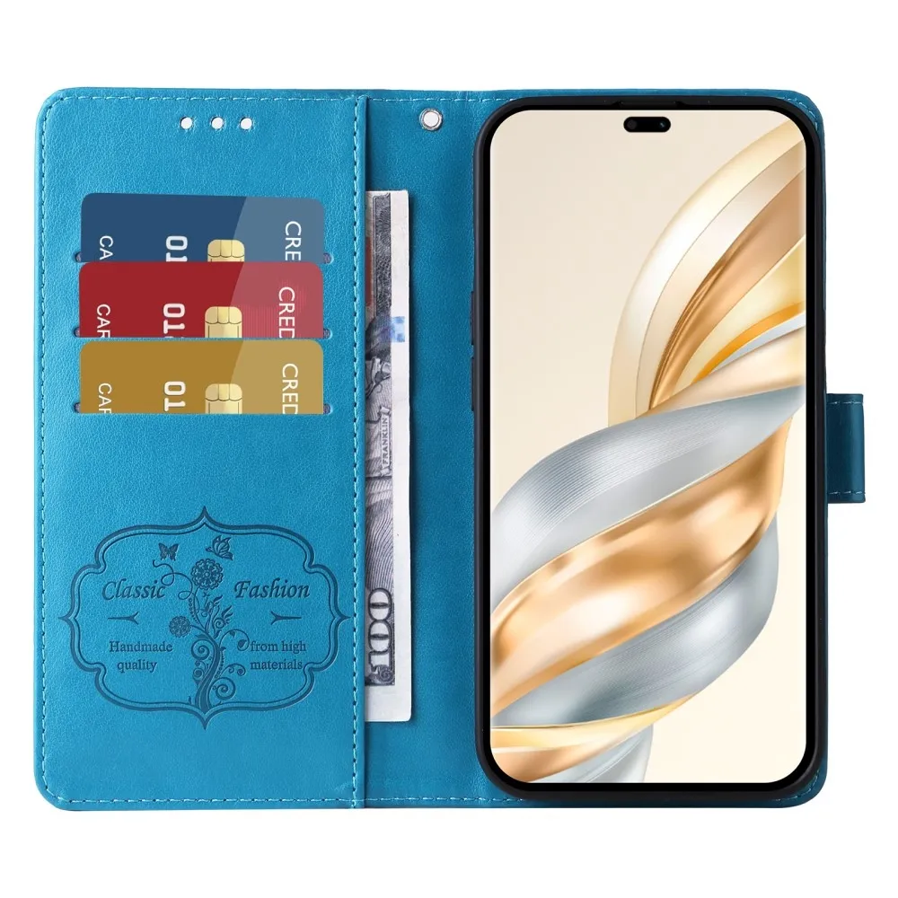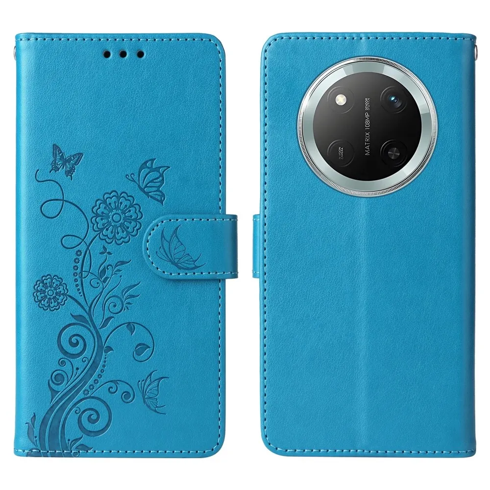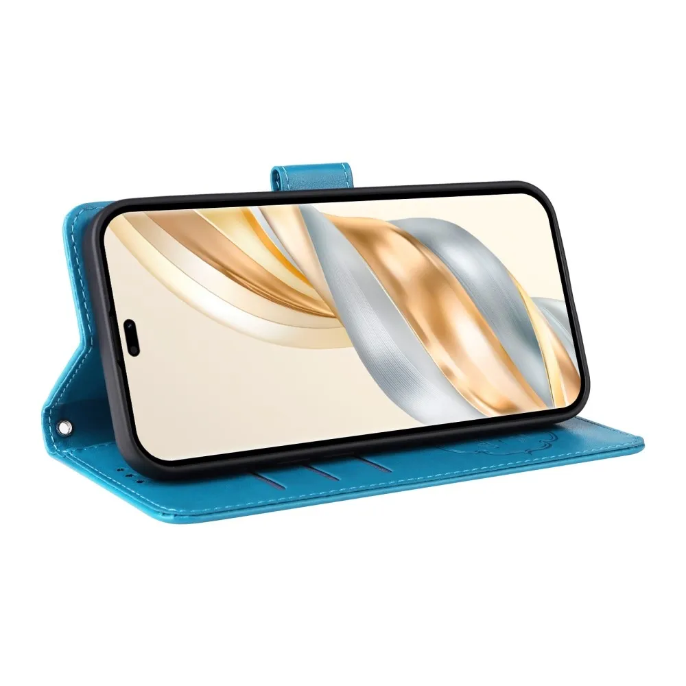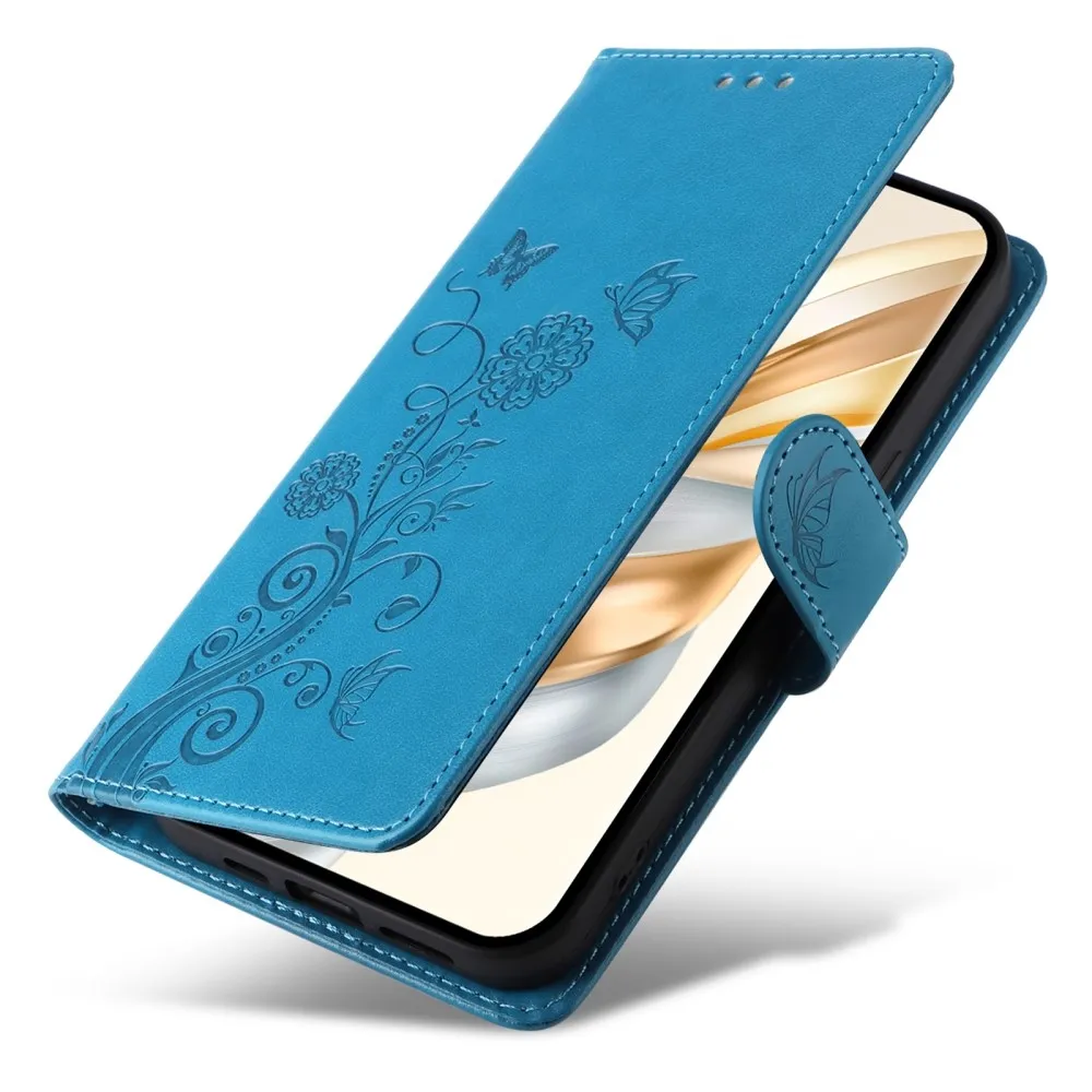 Kék pénztárca tok Virágos a Honor Magic 7 Lite 5G számára