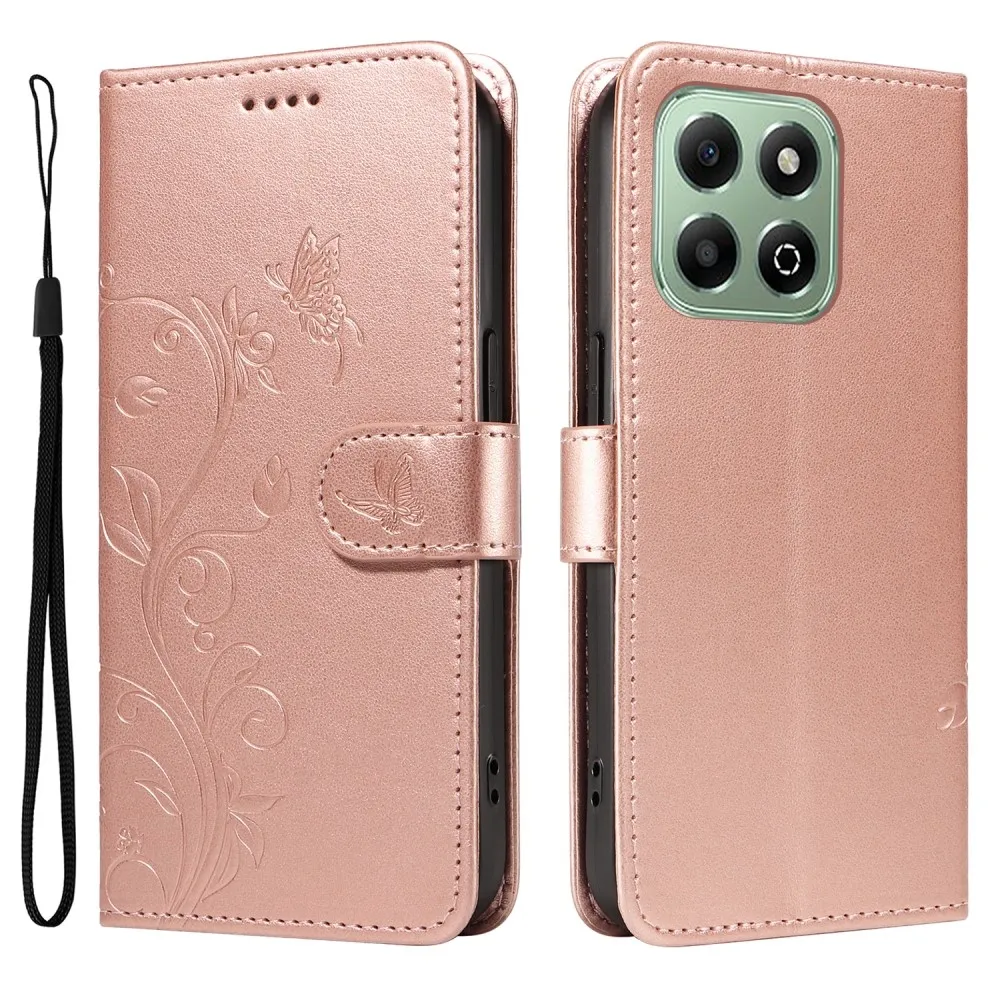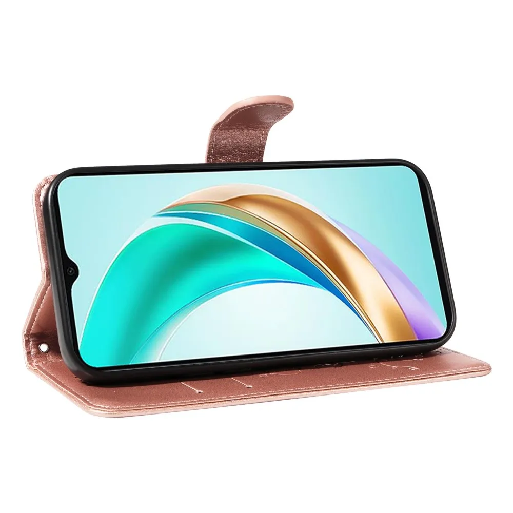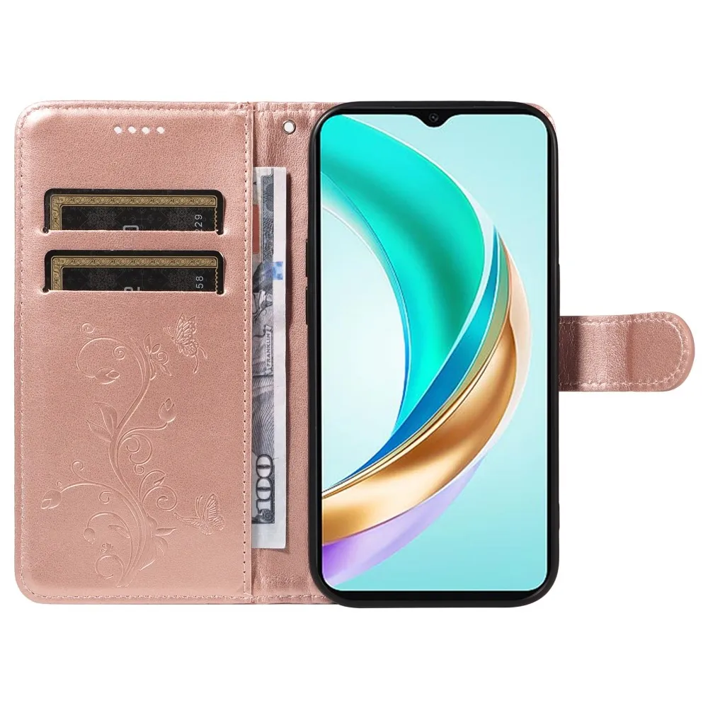 Rózsaszín és arany pénztárca tok Virágos a Honor X6b számára