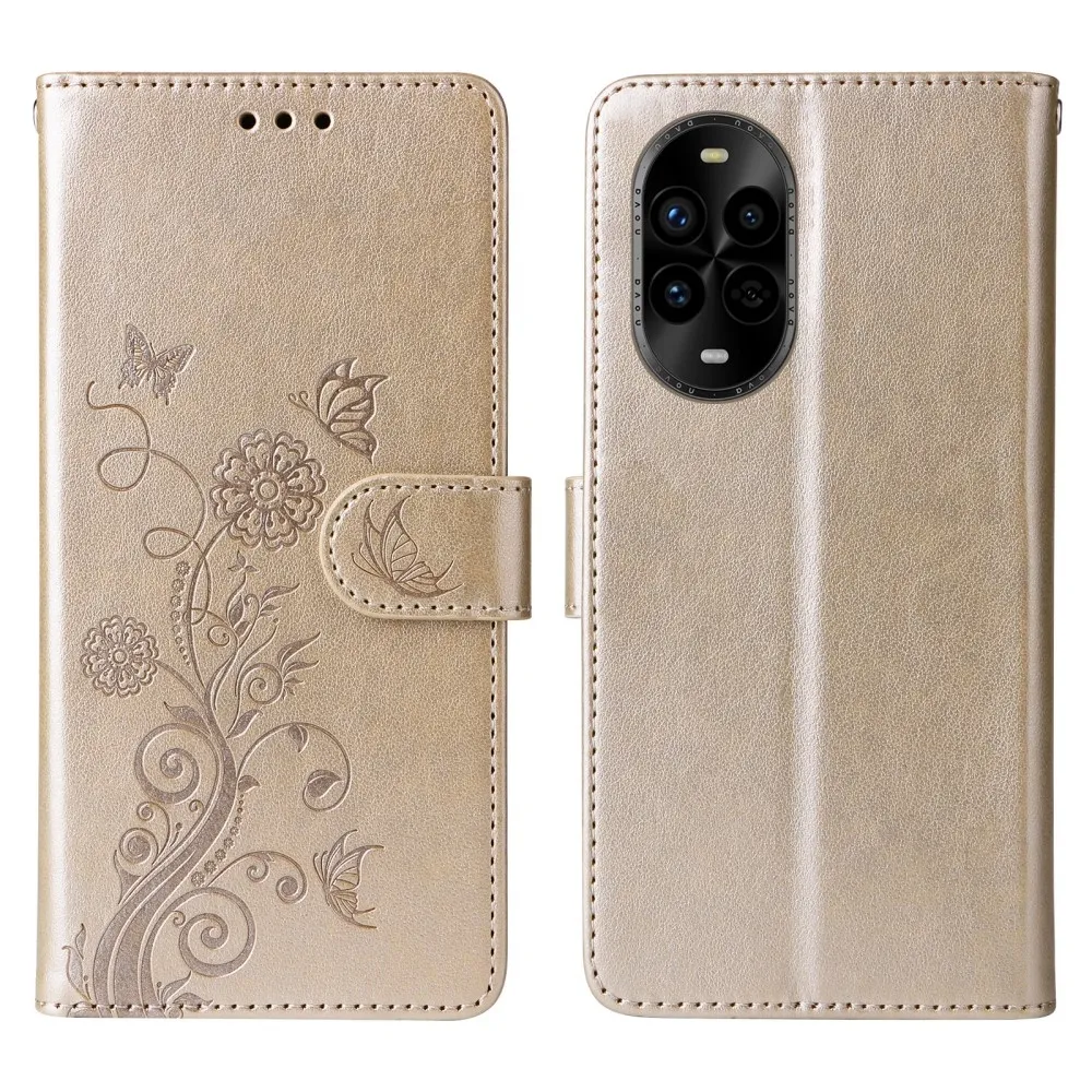 Arany pénztárca tok Virágos Huawei Nova 13 Pro 5G számára