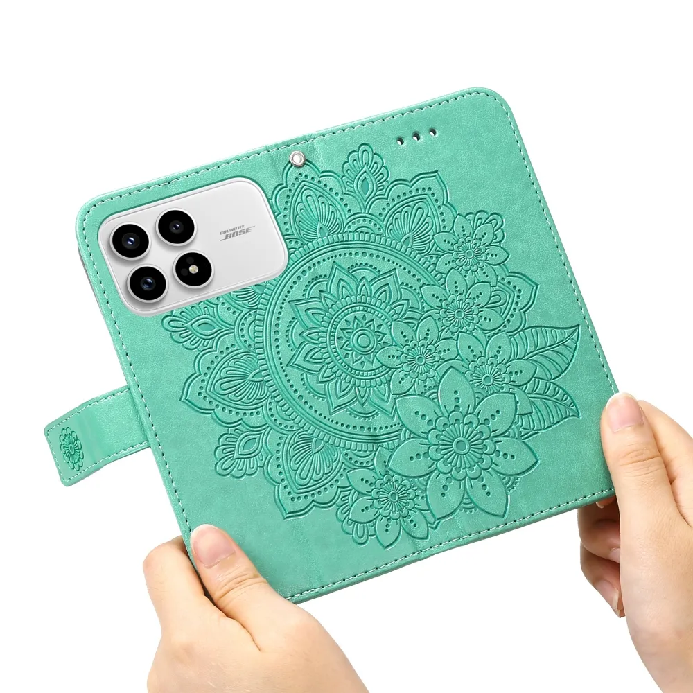 Kék-zöld pénztárca tok Floral a Xiaomi Poco F8 Pro 5G számára