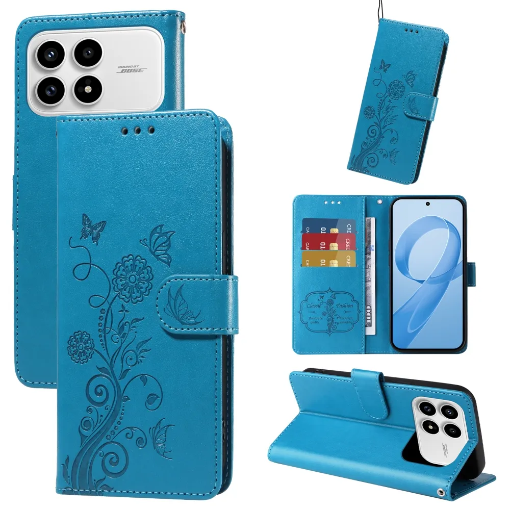 Kék pénztárca tok Virágos a Xiaomi Poco F8 Pro 5G számára