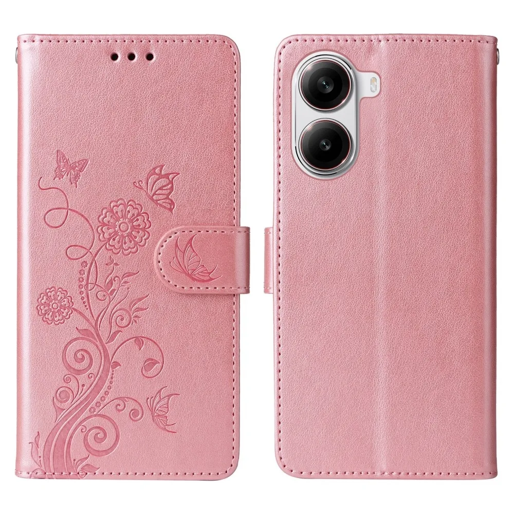 Rózsaszín pénztárca tok Virágos Xiaomi Poco X7 Pro 5G számára