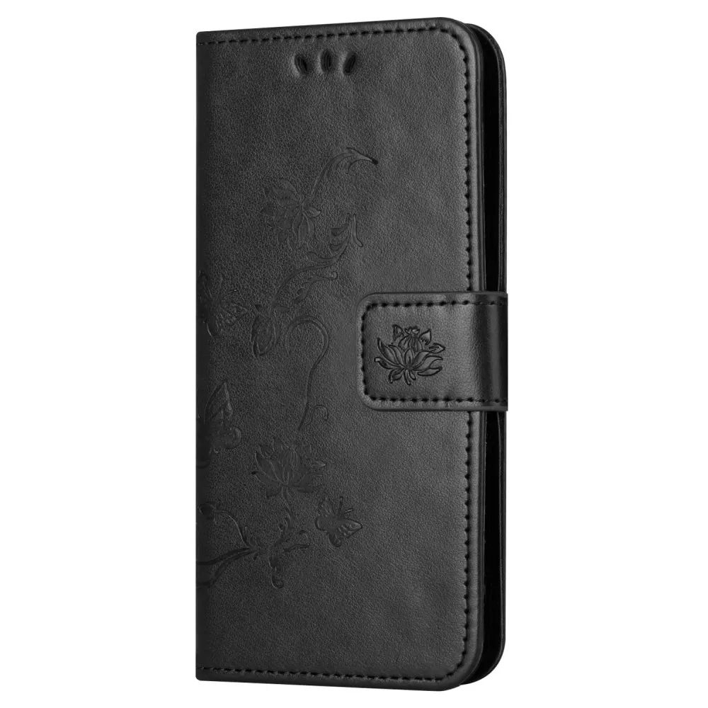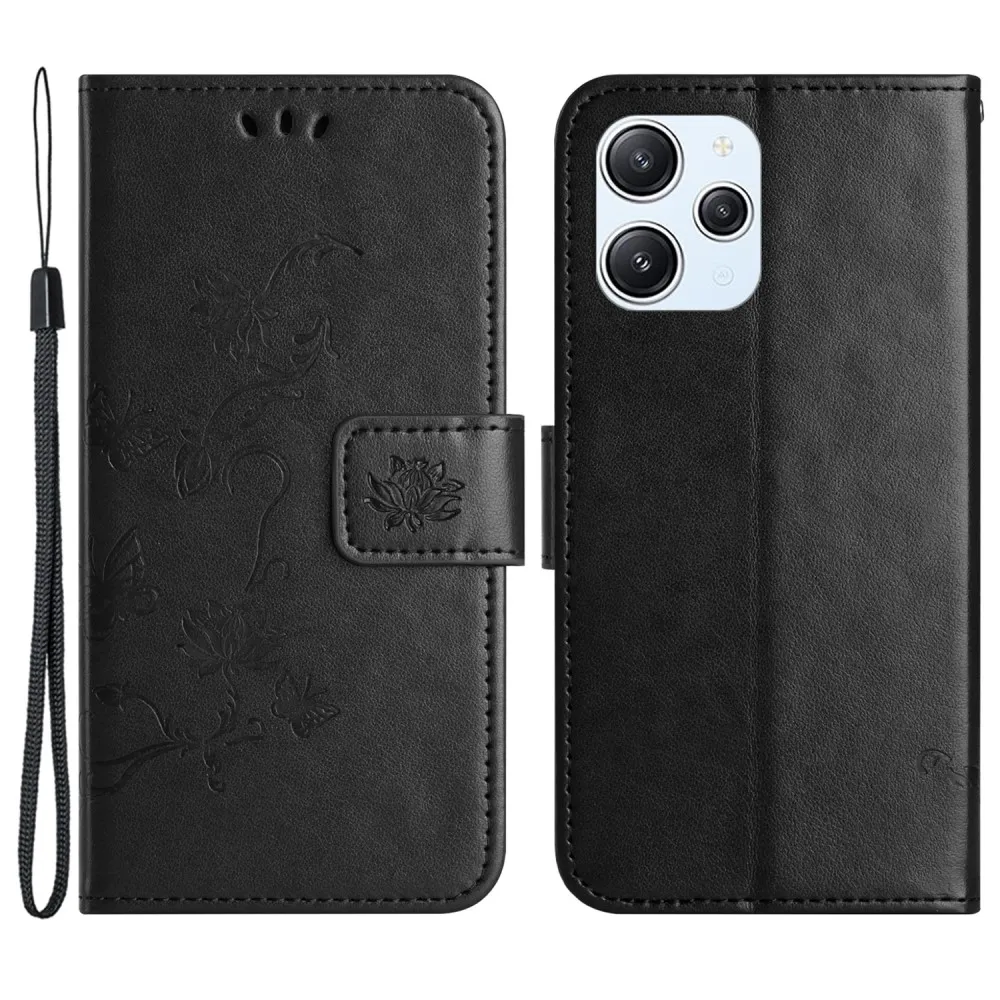 Fekete pénztárca tok Virág Xiaomi Redmi 12 4G/5G számára