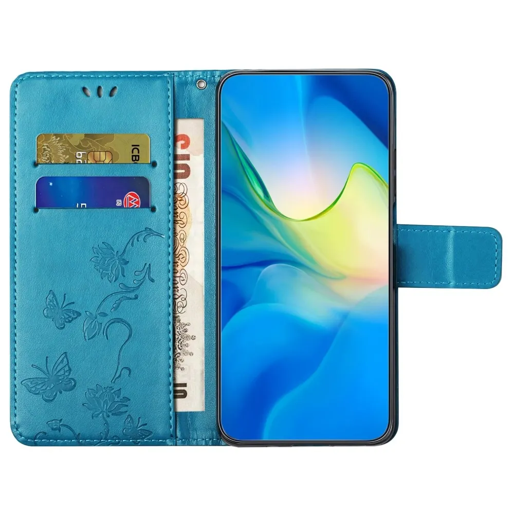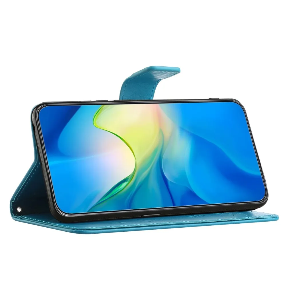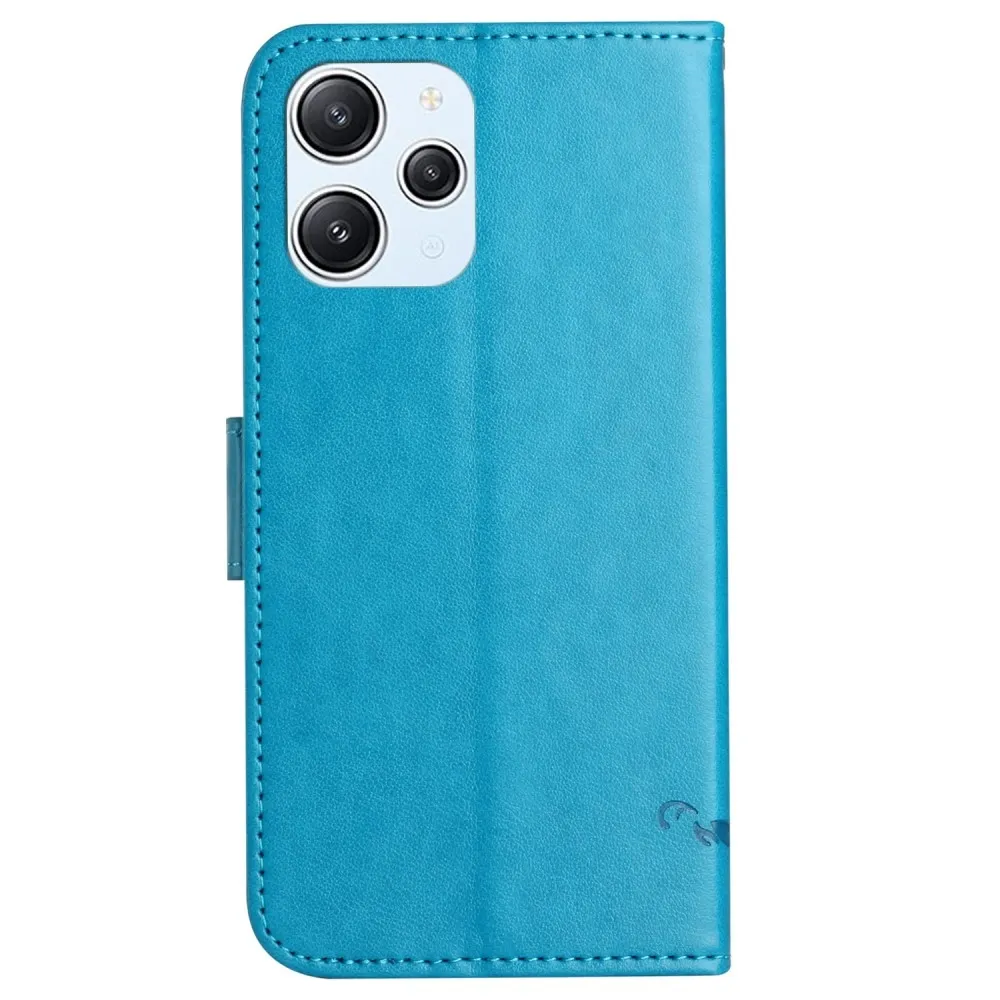 Kék pénztárca tok Virág Xiaomi Redmi 12 4G/5G számára