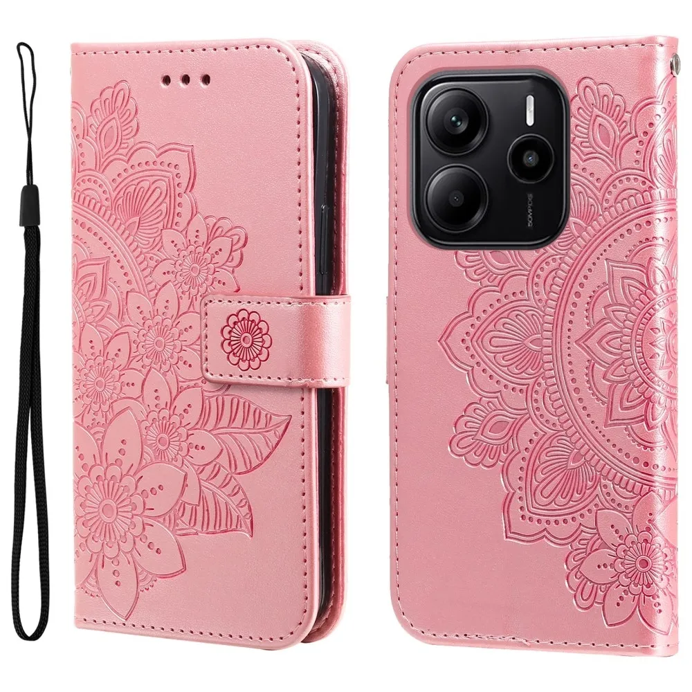 Rózsaszín pénztárca tok Floral a Xiaomi Redmi Note 14-hez