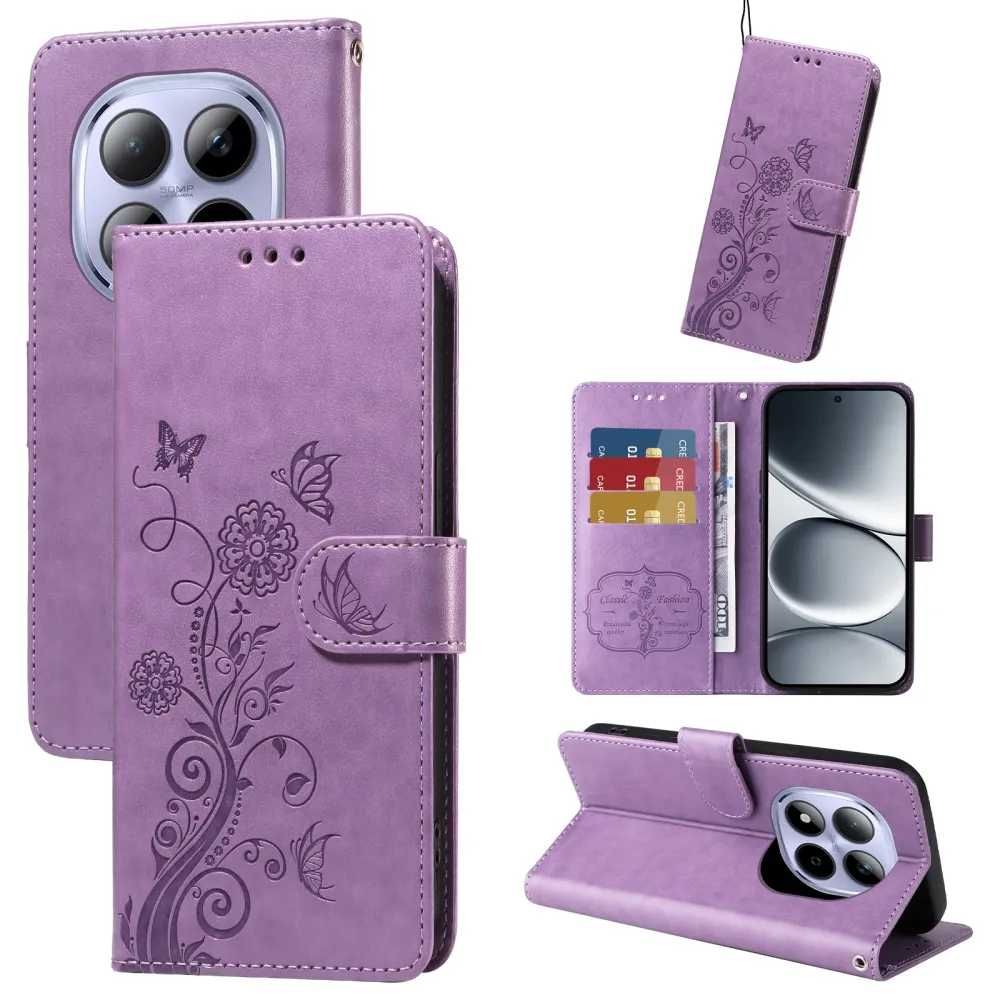 Virágos könyv tok a Xiaomi Redmi Note 15 Pro 4G-hez - lila