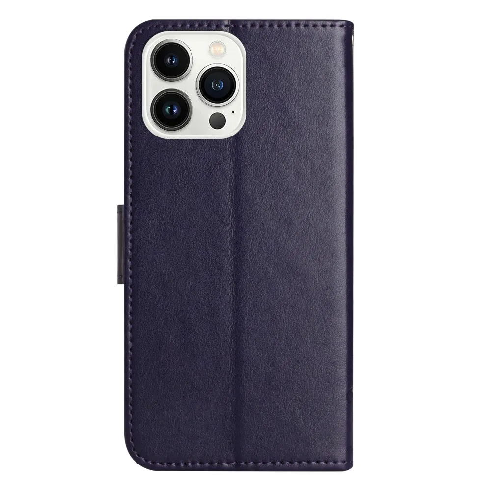 Sötétkék pénztárca tok Flower iPhone 16 Pro Max készülékhez