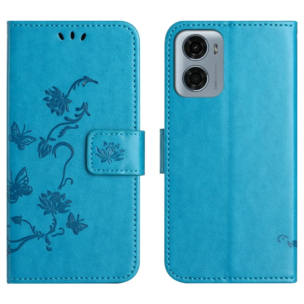 Virágos könyv tok Motorola Moto G06-hoz - kék