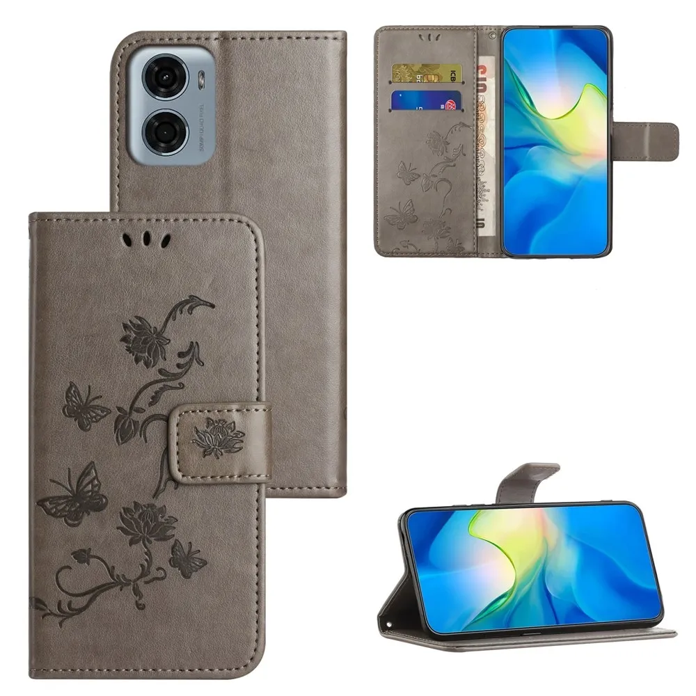 Virágos könyv tok Motorola Moto G06-hoz - szürke