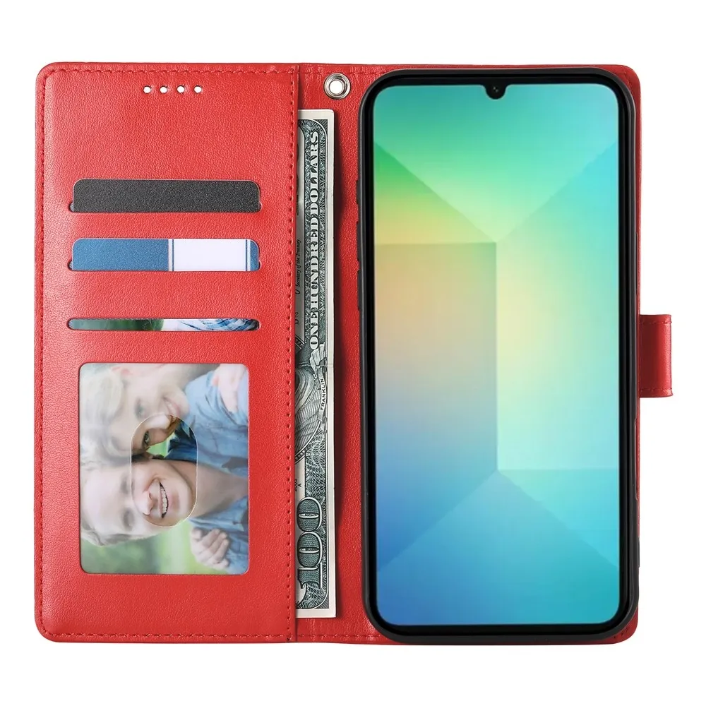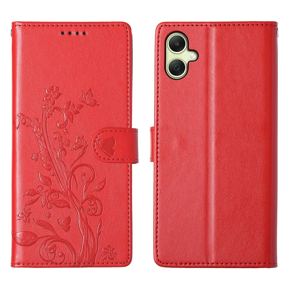 Piros pénztárca tok Virágos a Samsung Galaxy A07 4G-hez