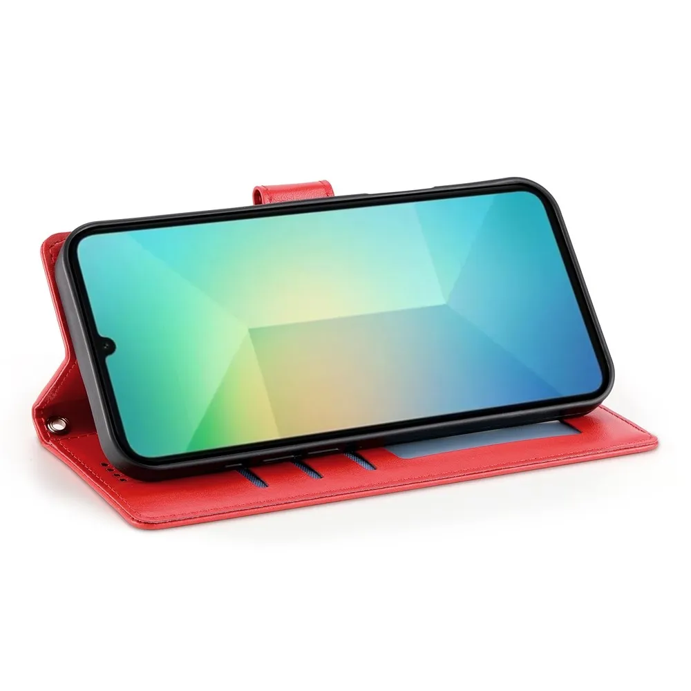 A Samsung Galaxy A07 4G pénztárca tokja csuklós rendszerrel rendelkezik, amelyen a telefon vízszintes helyzetben áll. Így filmeket nézhetsz anélkül, hogy a készüléket fognod kellene, vagy külön állványt kellene készítened. Ezáltal a kezeid is szabadon maradnak.