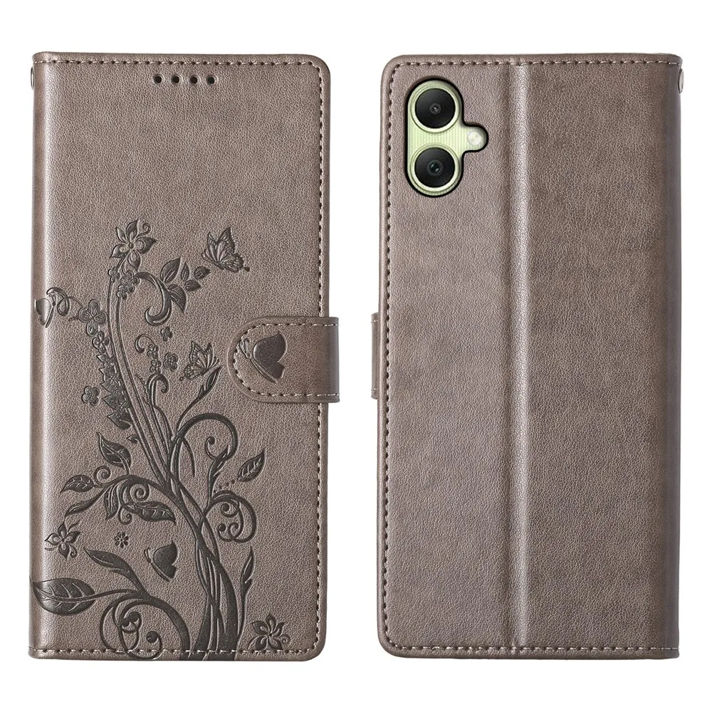 Szürke pénztárca tok Virágos Samsung Galaxy A07 4G-hez