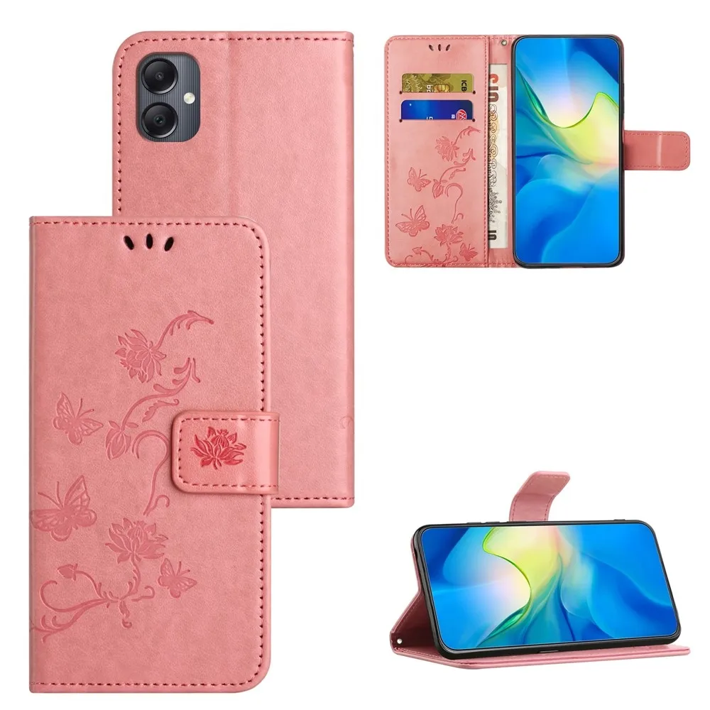 Rózsaszín pénztárca tok Virág Samsung Galaxy A07 4G-hez