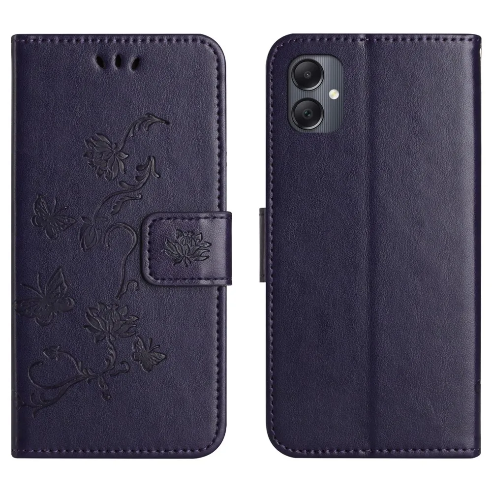 Sötét lila pénztárca tok Virág Samsung Galaxy A07 4G-hez