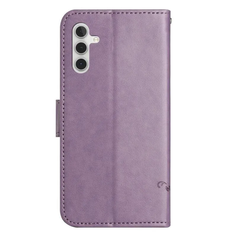 Virág világos lila pénztárca tok Samsung Galaxy A14 4G/5G számára