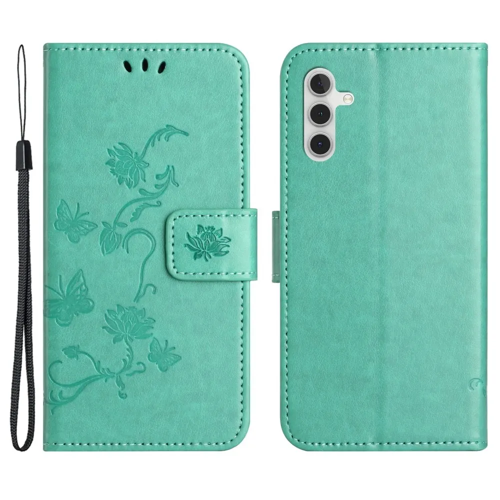Kék-zöld pénztárca tok Virág Samsung Galaxy S24-hez