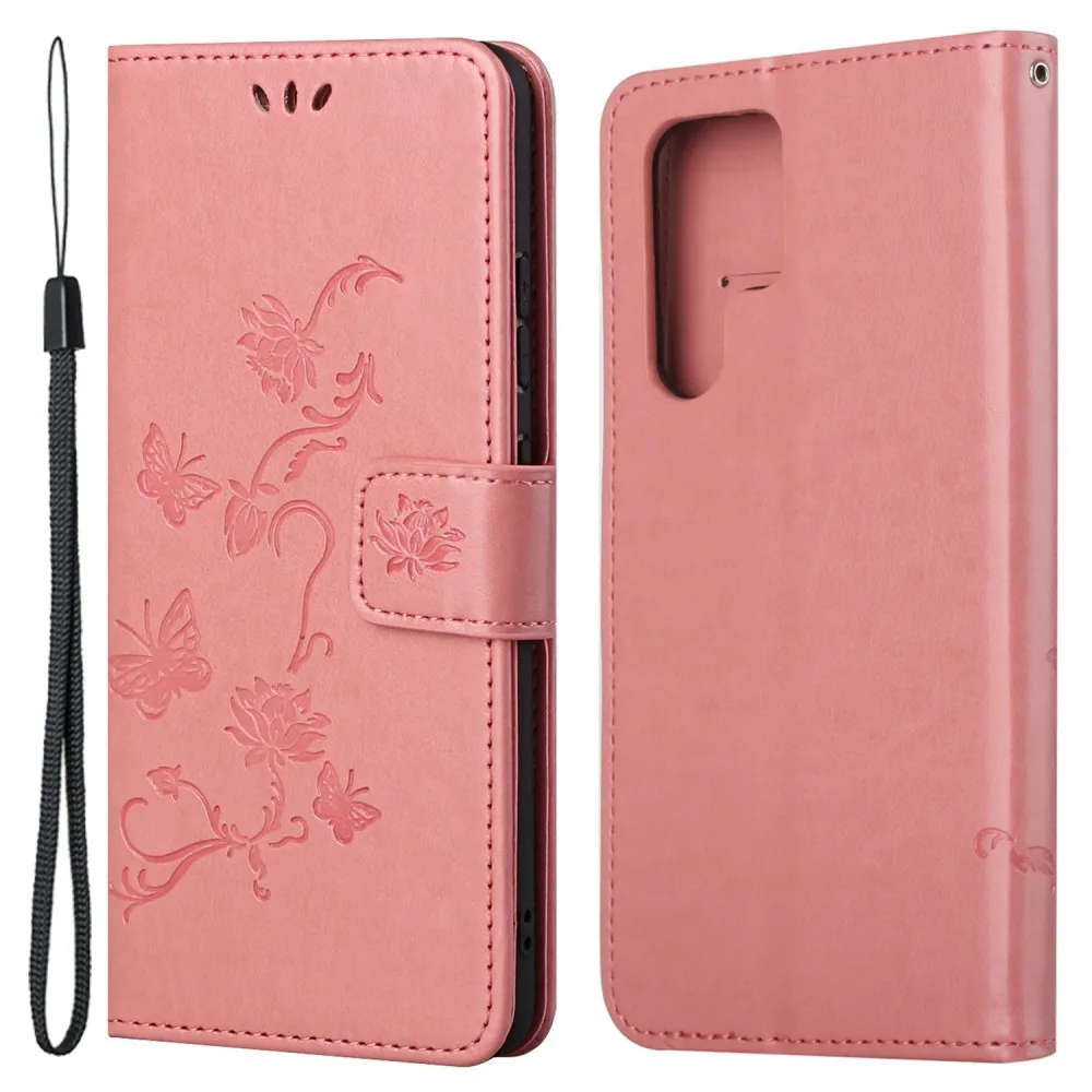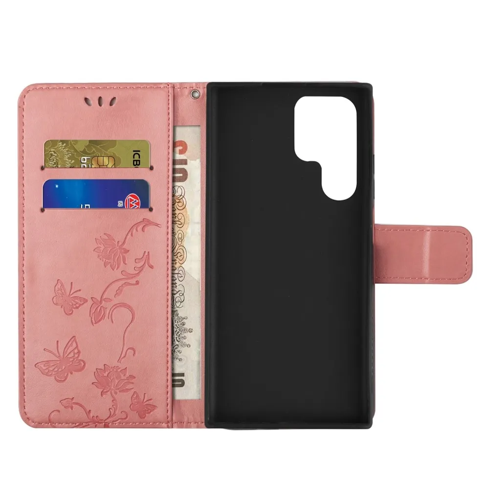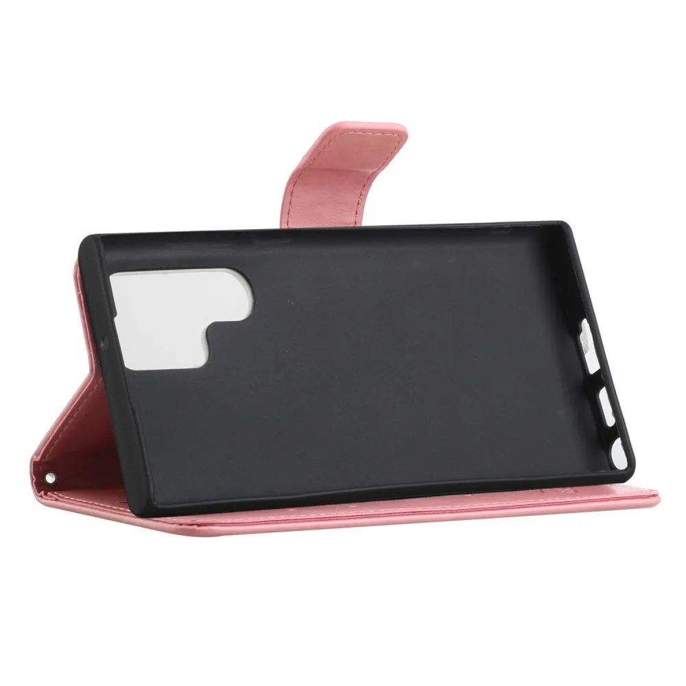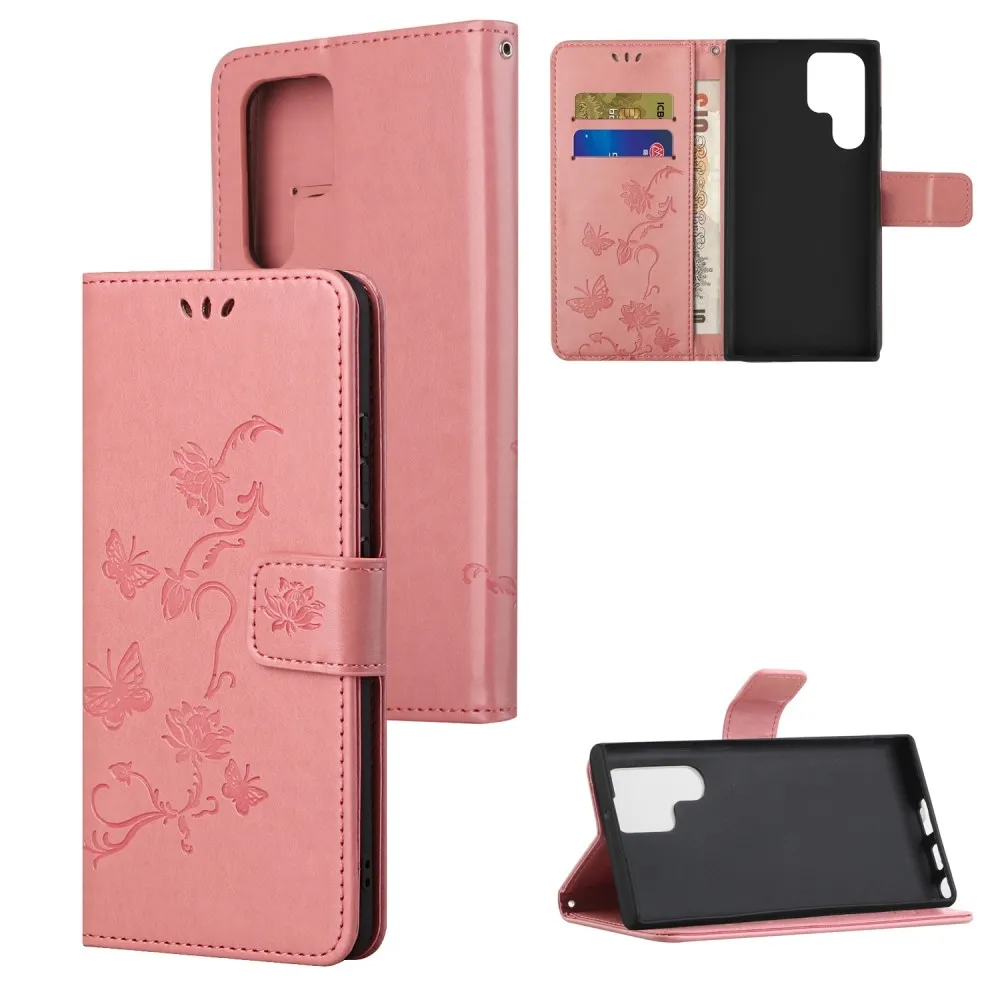 Rózsaszín pénztárca tok Virág Samsung Galaxy S24 Ultra számára