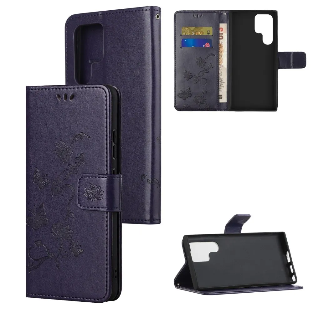 Virágos könyv tok Samsung Galaxy S24 Ultra készülékhez - sötét lila