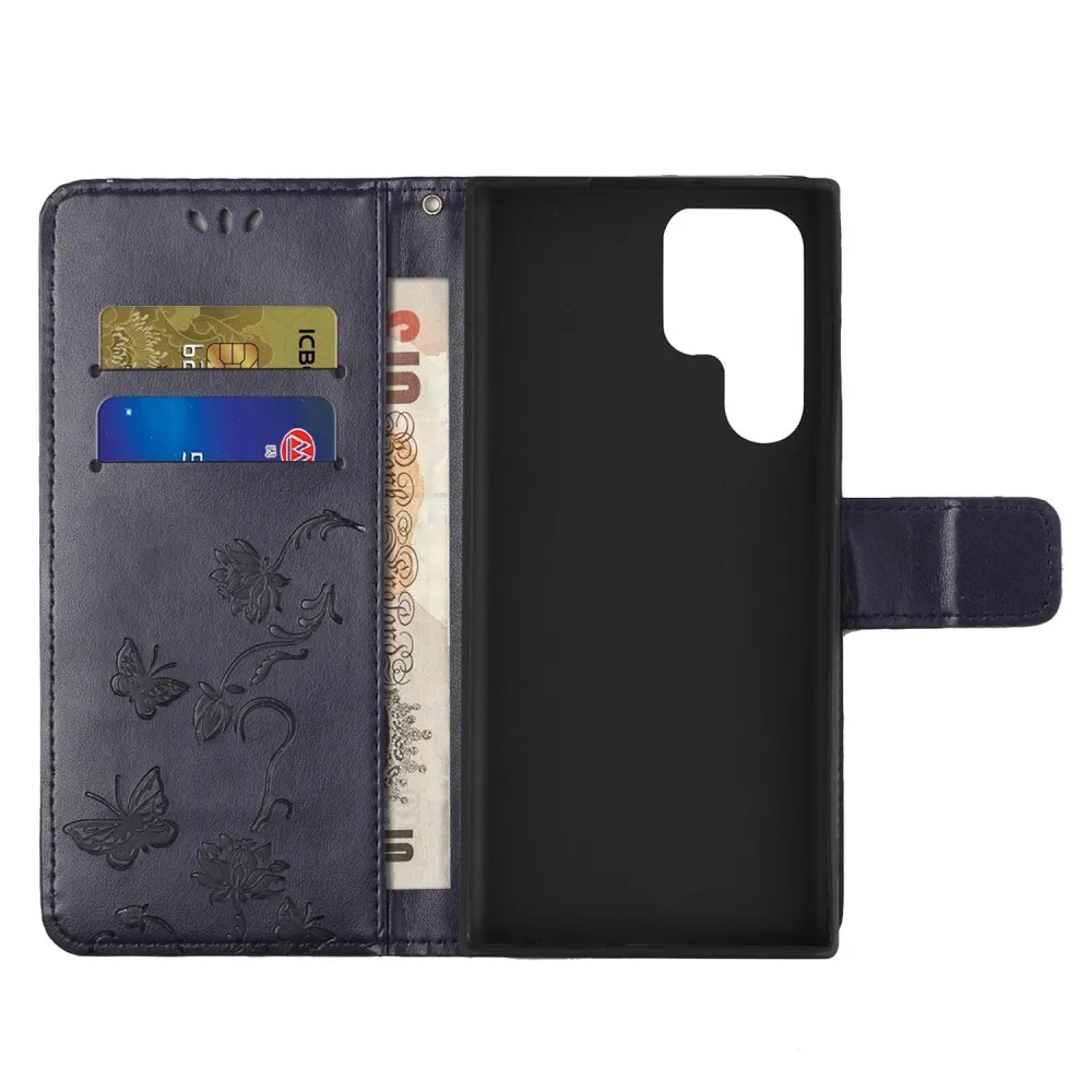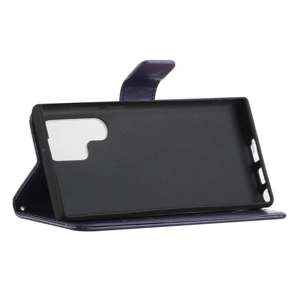 Sötét lila pénztárca tok Flower Samsung Galaxy S24 Ultra számára