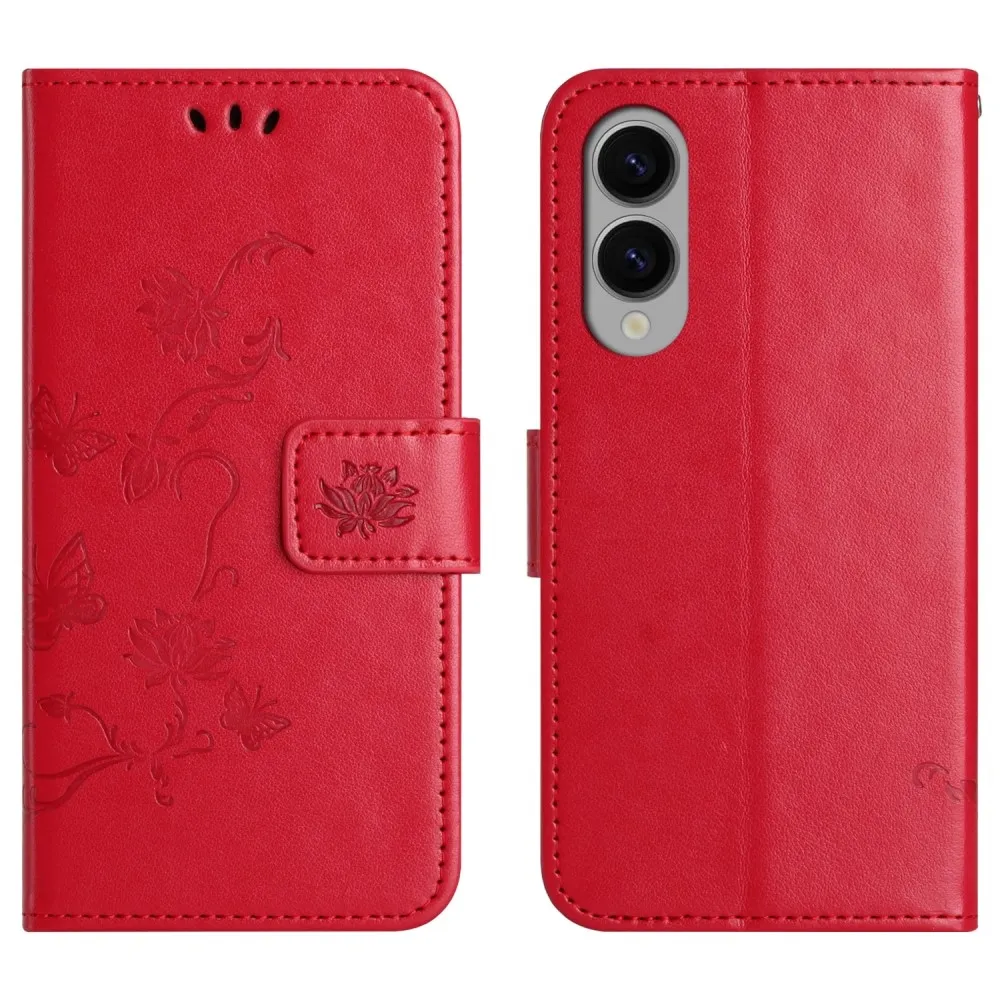 Piros pénztárca tok Virág Samsung Galaxy S25 Edge számára