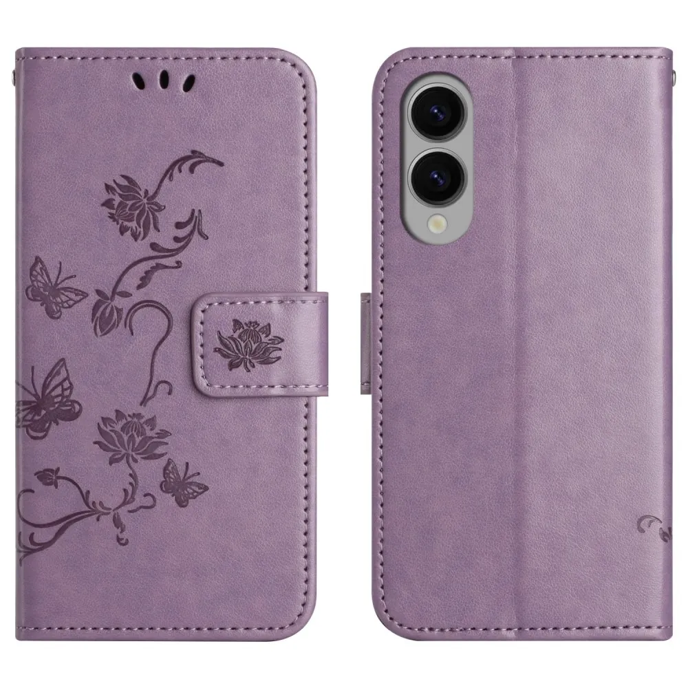 Világos lila pénztárca tok Virág Samsung Galaxy S25 Edge-hez