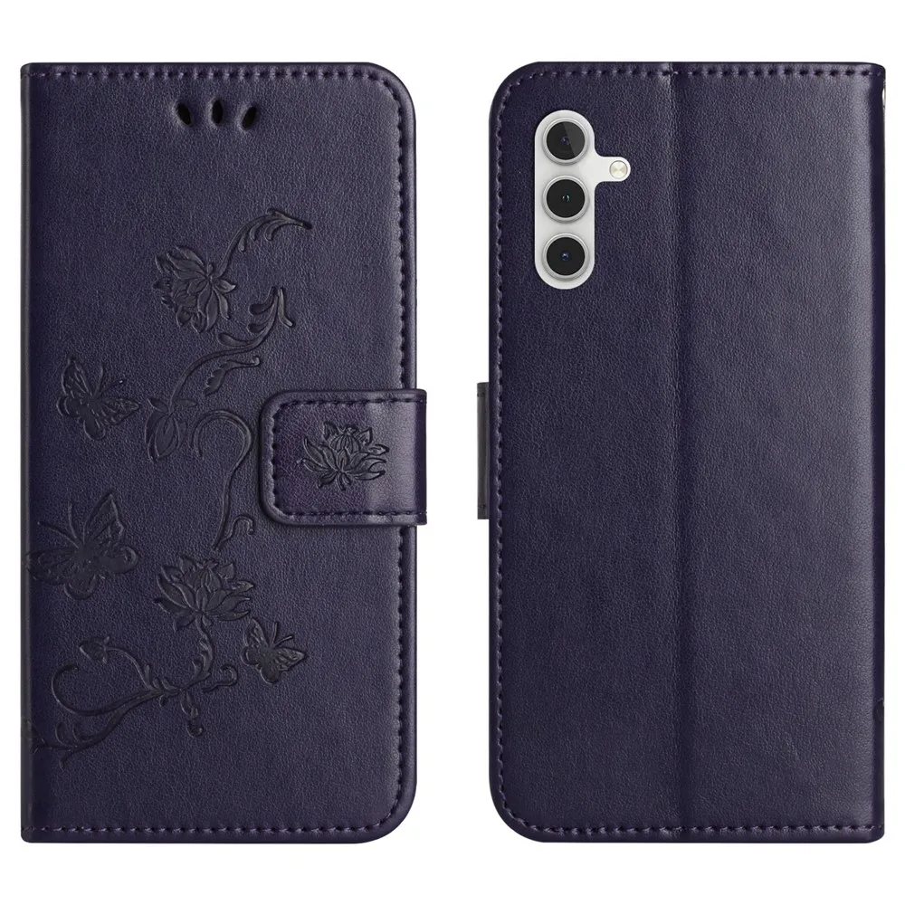 Sötétlila pénztárca tok Virág Samsung Galaxy S25 FE számára