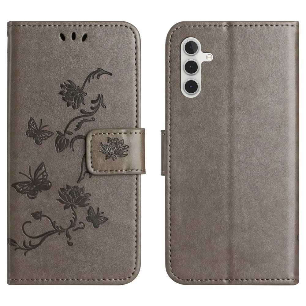 Szürke pénztárca tok Virág Samsung Galaxy S25 FE számára