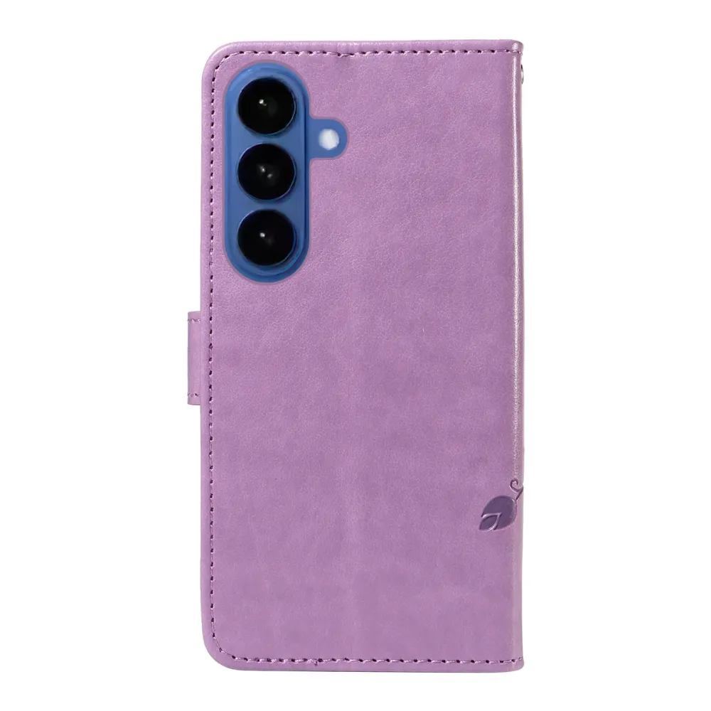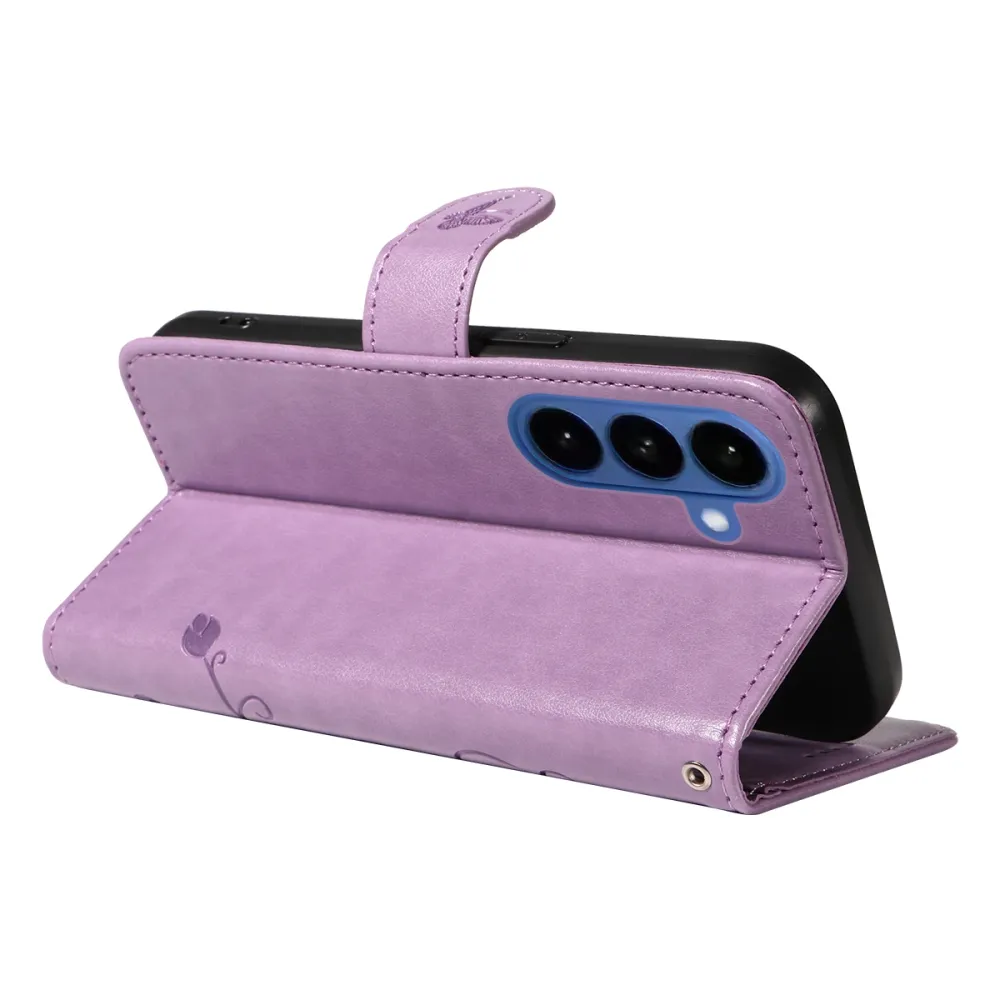 Lila pénztárca tok Virágos Samsung Galaxy S26+ számára