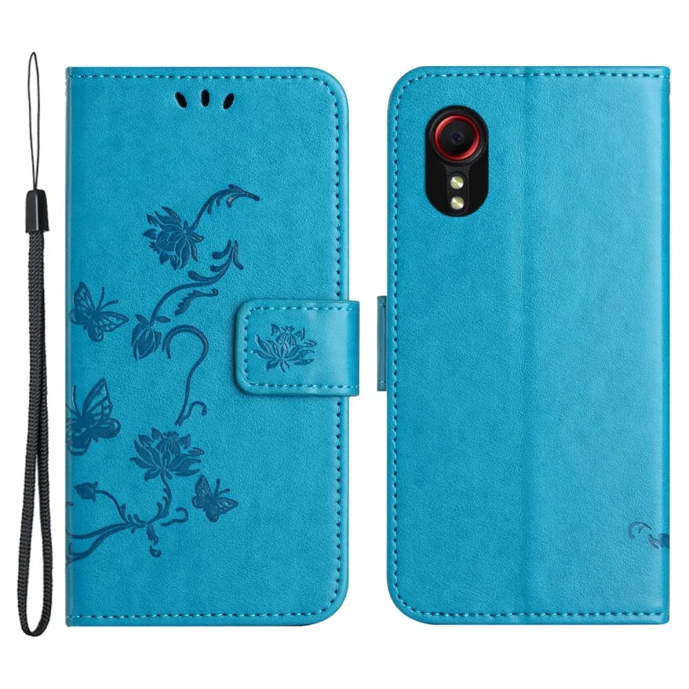 Kék pénztárca tok Virág Samsung Galaxy Xcover 7-hez