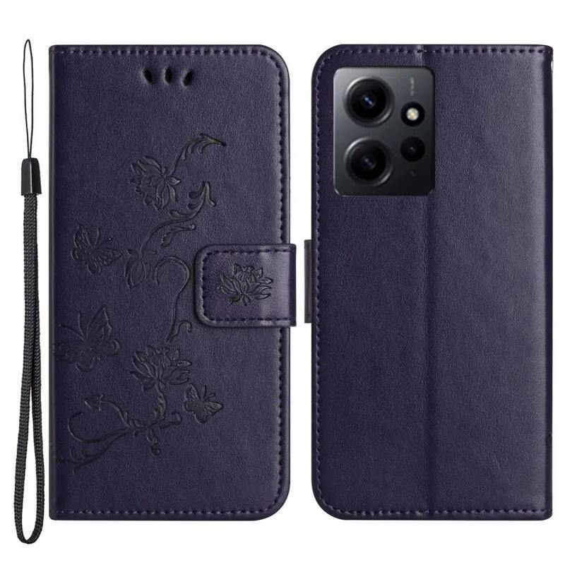 Virág sötét lila pénztárca tok Xiaomi Redmi Note 12 4G-hez
