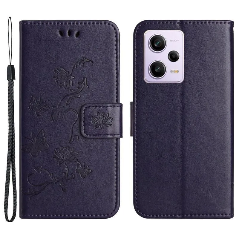 Virág sötétlila pénztárca tok Xiaomi Redmi Note 12 5G/Poco X5 5G számára