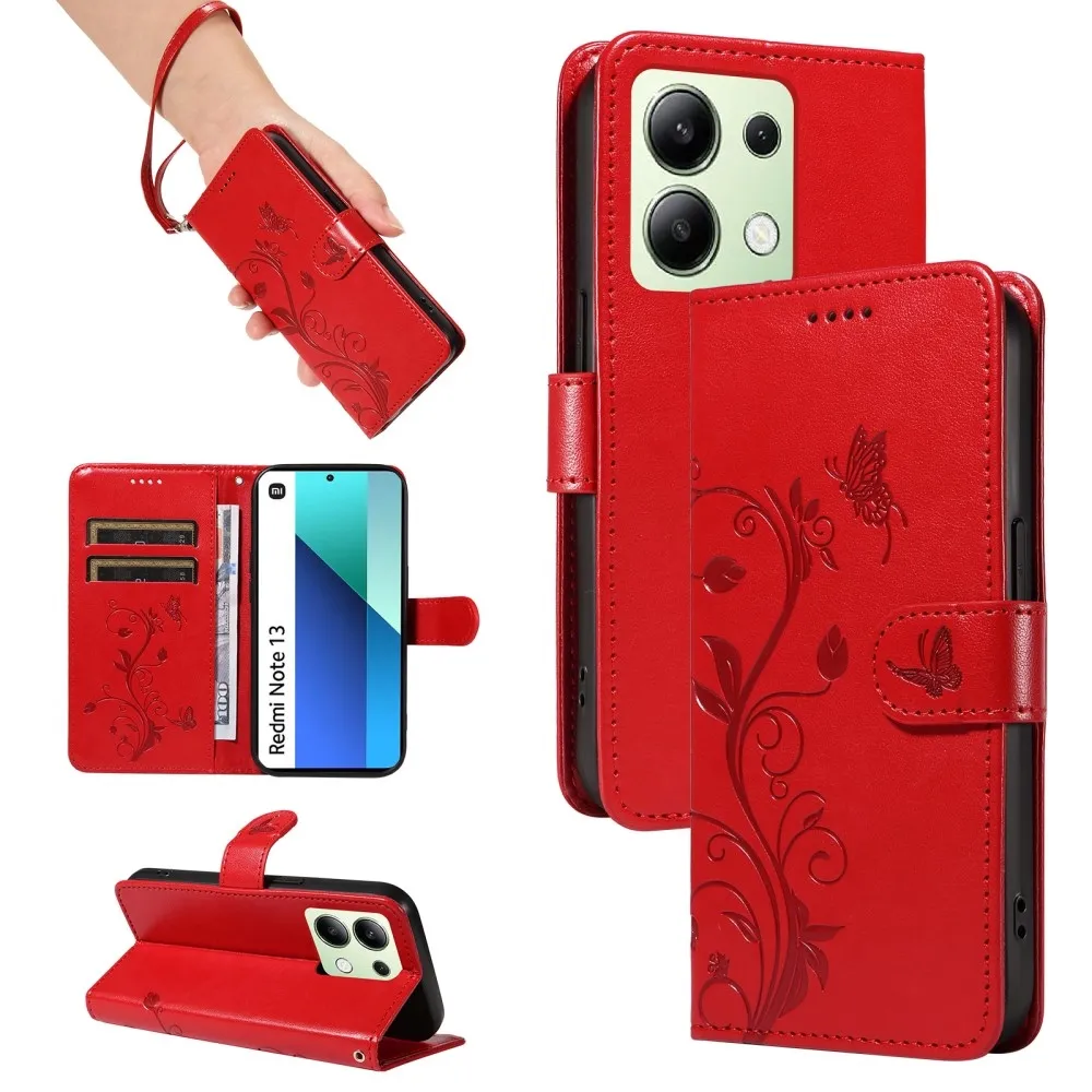 Piros pénztárca tok Flower a Xiaomi Redmi Note 13-hoz