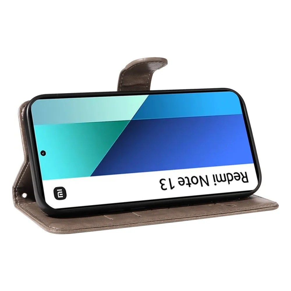 Szürke pénztárca tok Flower a Xiaomi Redmi Note 13-hoz