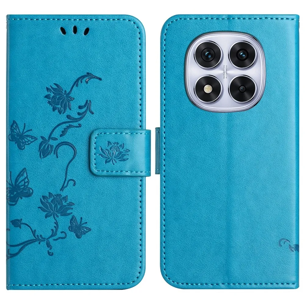 Kék pénztárca tok Virág a Xiaomi Redmi Note 14 Pro 5G/Poco X7 5G/Note 14 Pro+ 5G számára