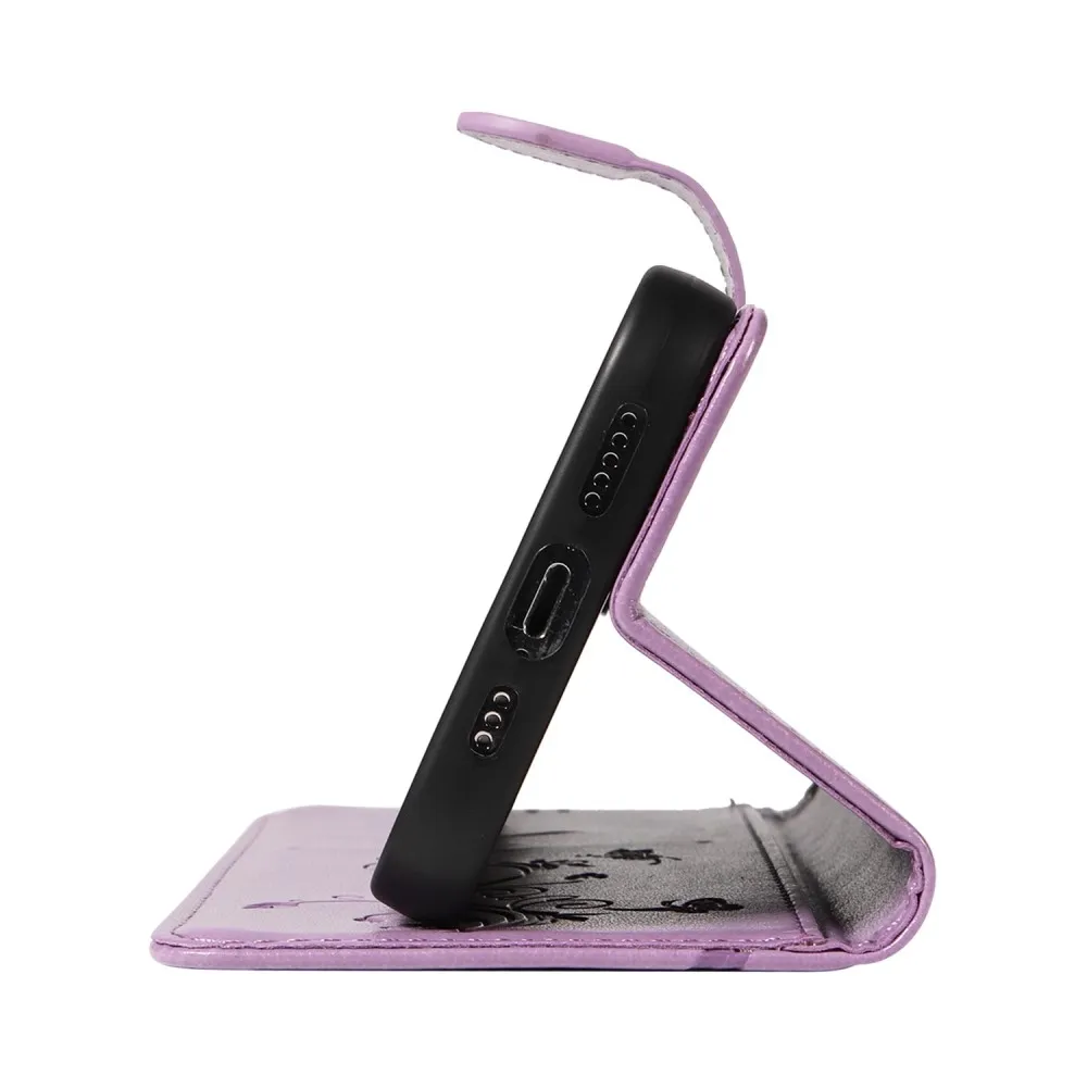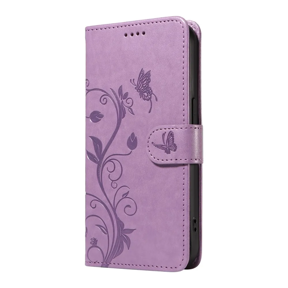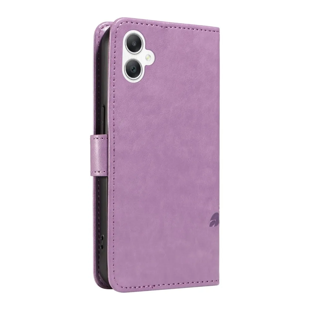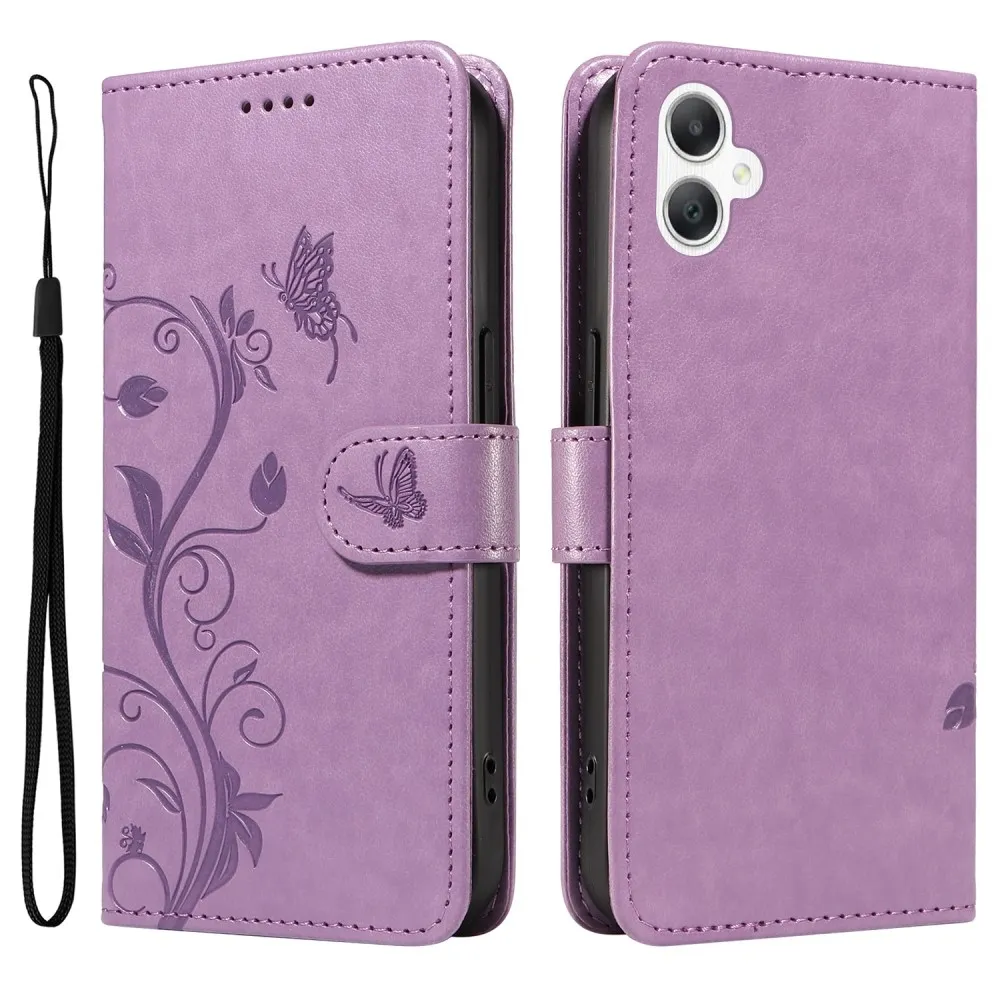 Lila pénztárca tok Virágos Samsung Galaxy A06 4G számára