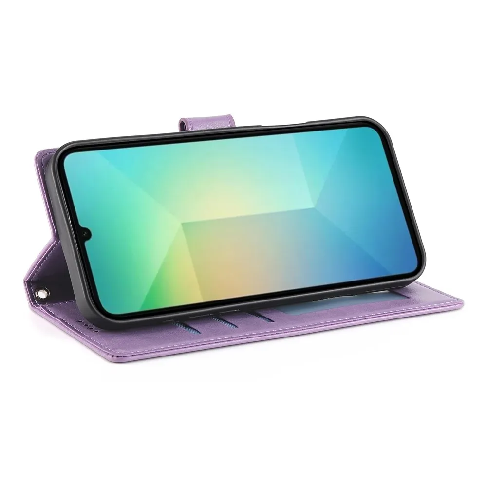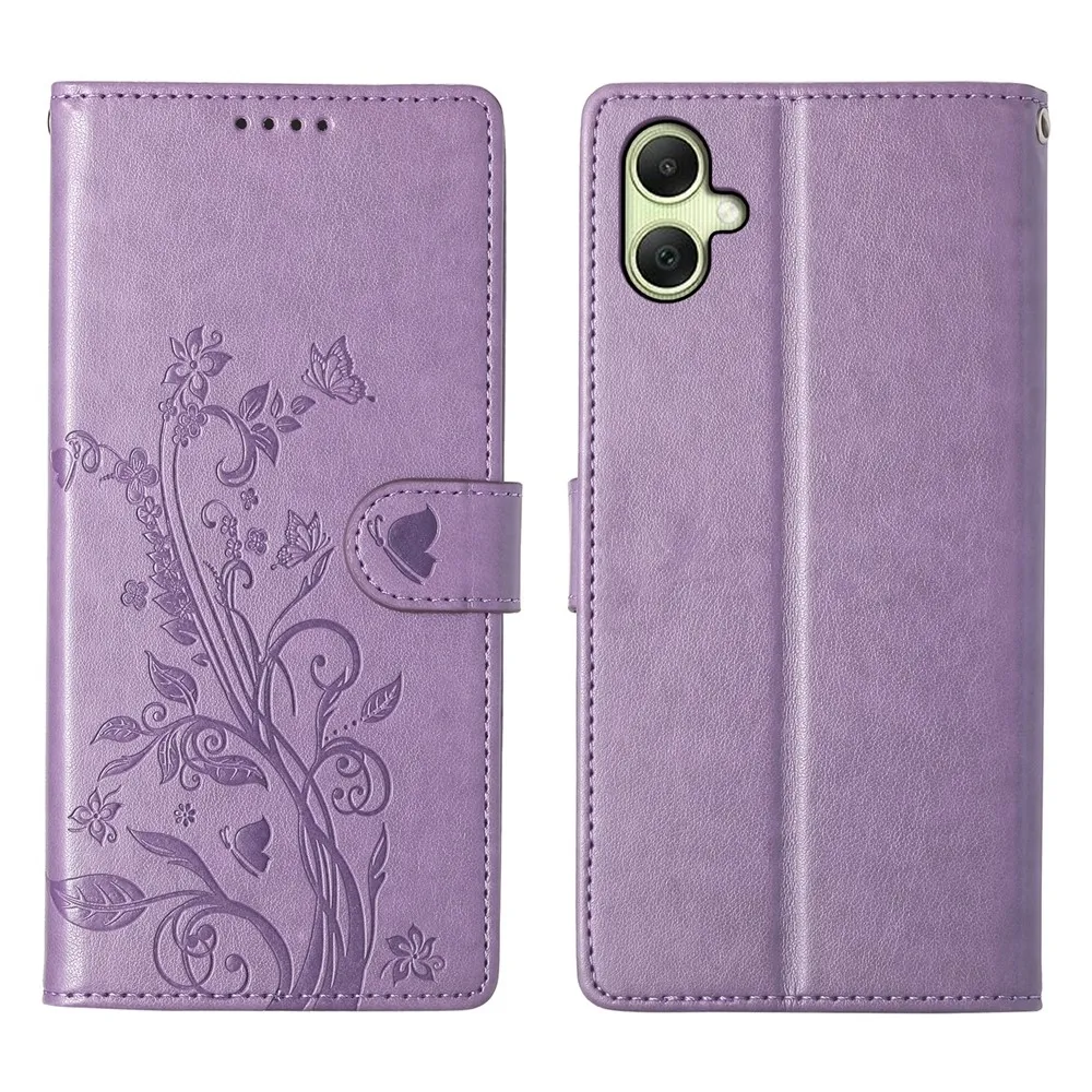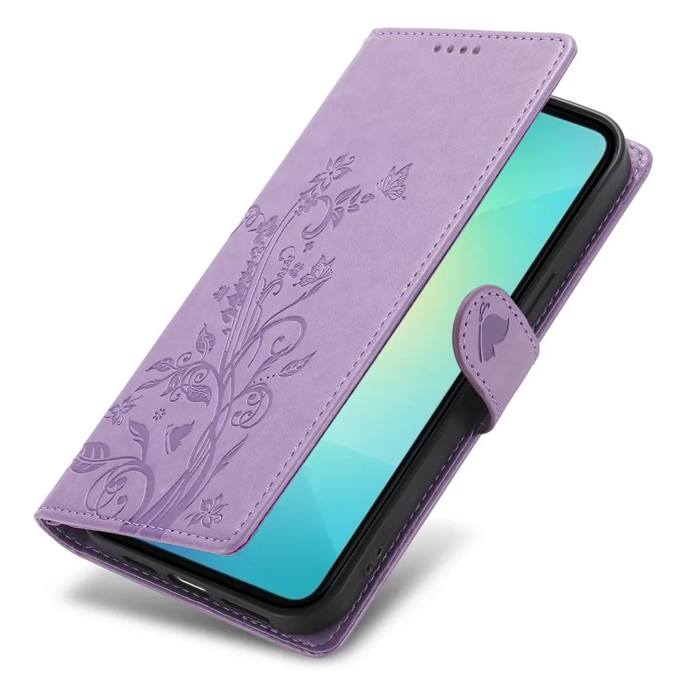 Lila pénztárca tok Virágos Samsung Galaxy A07 4G számára