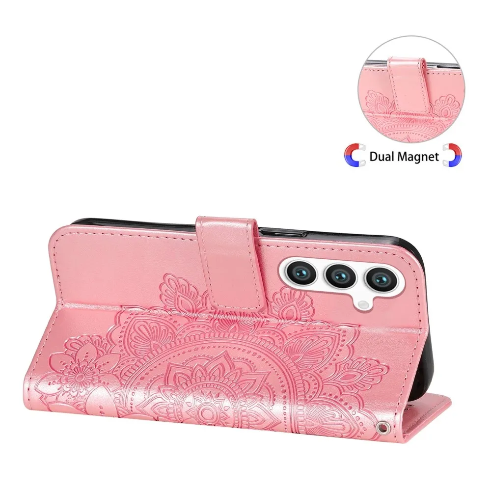 Rózsaszín pénztárca tok Floral Samsung Galaxy S25+ készülékhez