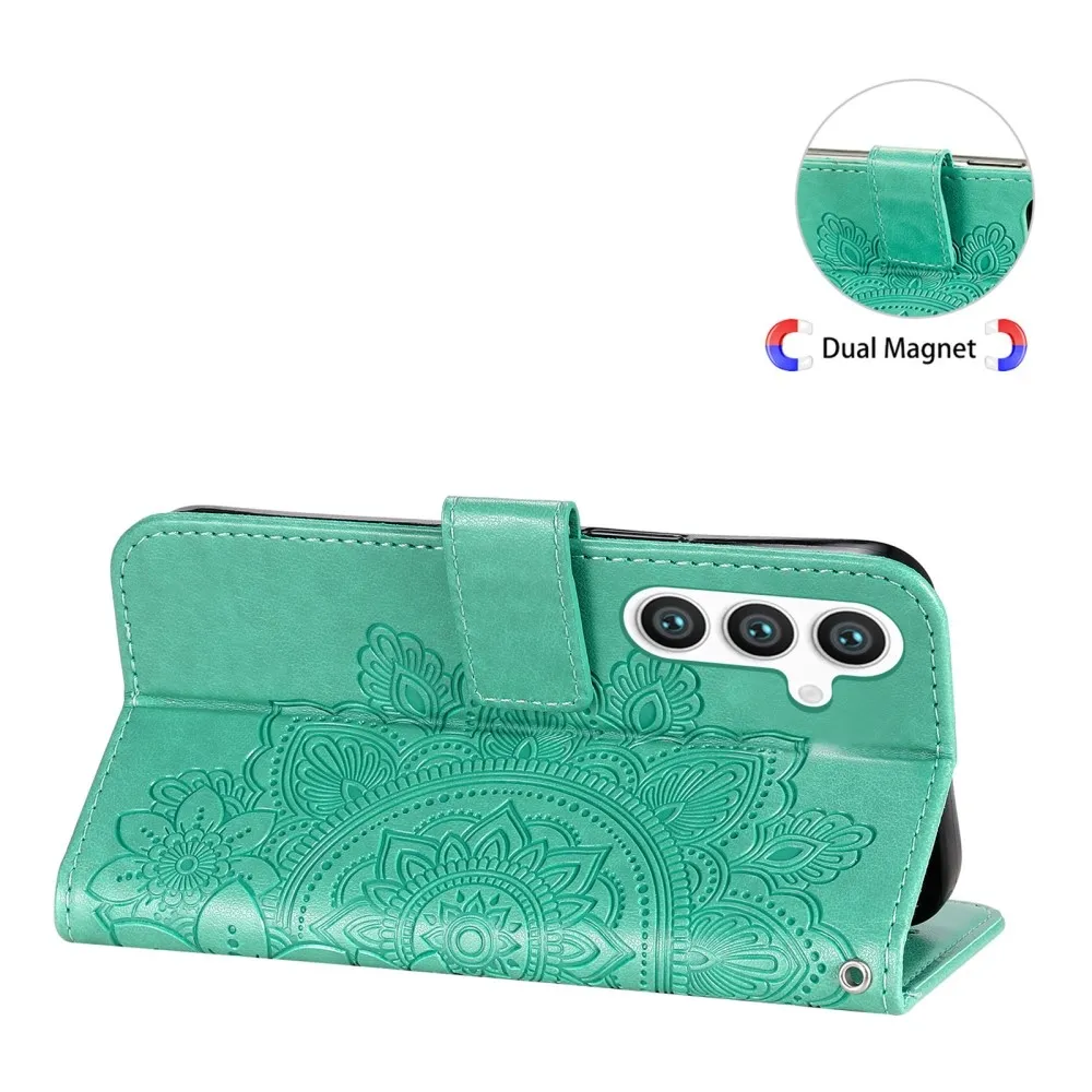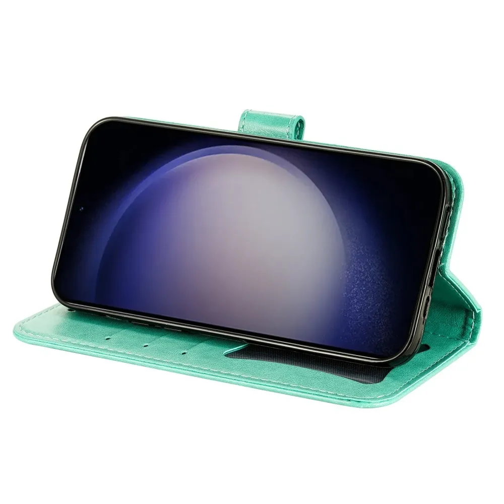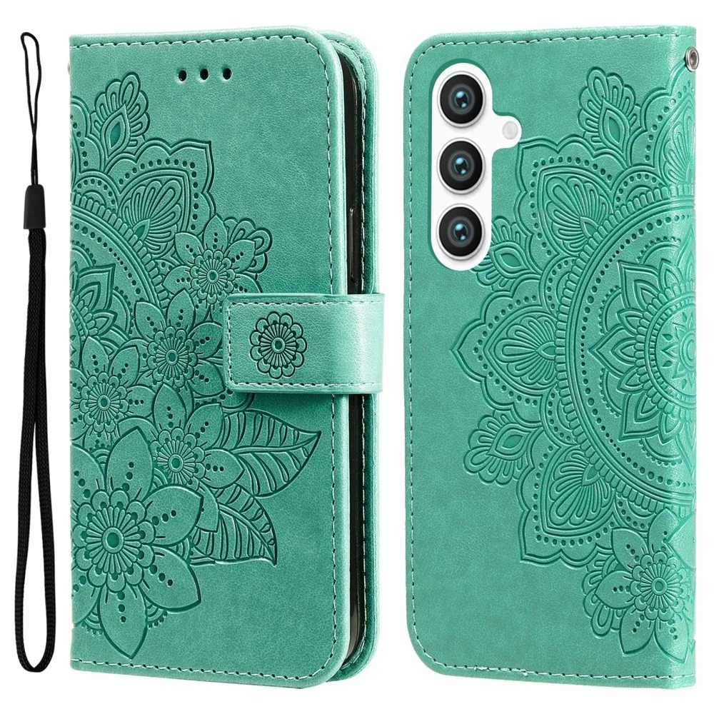 Kék-zöld pénztárca tok Floral Samsung Galaxy S25+ készülékhez