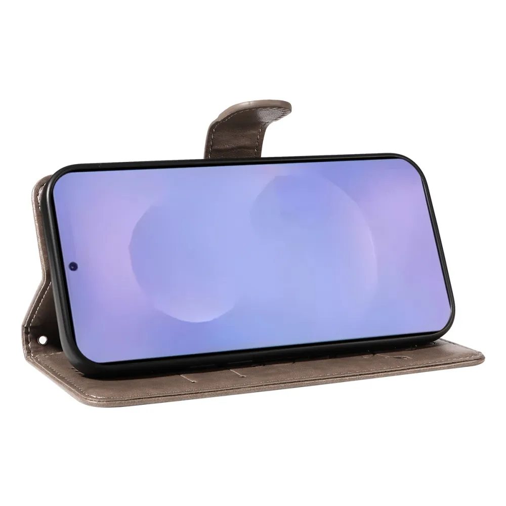Szürke pénztárca tok Virágos Samsung Galaxy S26+ számára