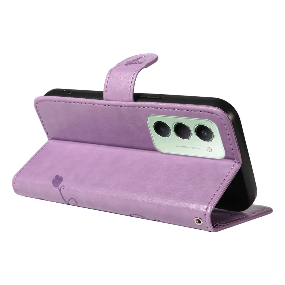 • Elegáns műbőr világoslila színben, virágzó virágok és pillangók mintájával.