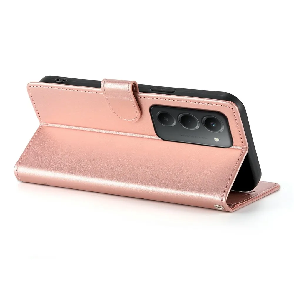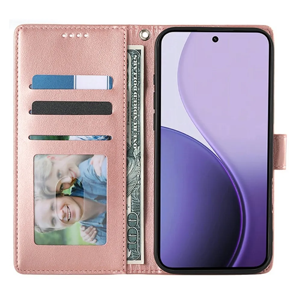 Rózsaszín és arany pénztárca tok Virágos a Xiaomi Redmi 15 5G (169mm) számára