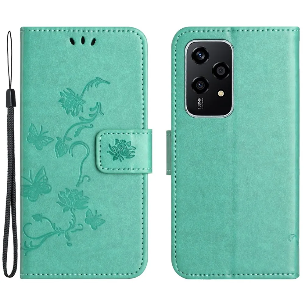 Kék-zöld pénztárca tok Flower a Honor 200 Lite 5G számára