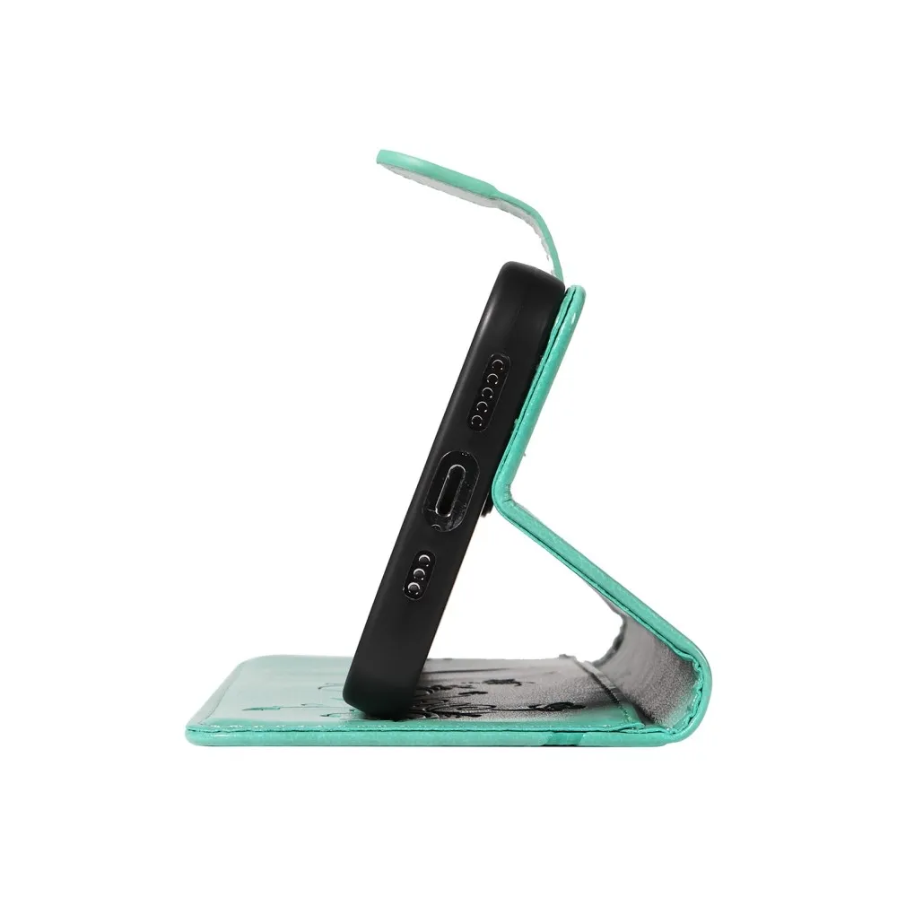A tok anyaga poliuretánból készült, amelyet jogosan neveznek műbőrnek. Első pillantásra megkülönböztethetetlen az igazitól, és tapintásra is ugyanolyan. Finom szálakkal és luxus textúrával rendelkezik. A tok kékeszöld dizájnja, a természet dombornyomott, finom motívumával kiegészíti az ízléses összképet.