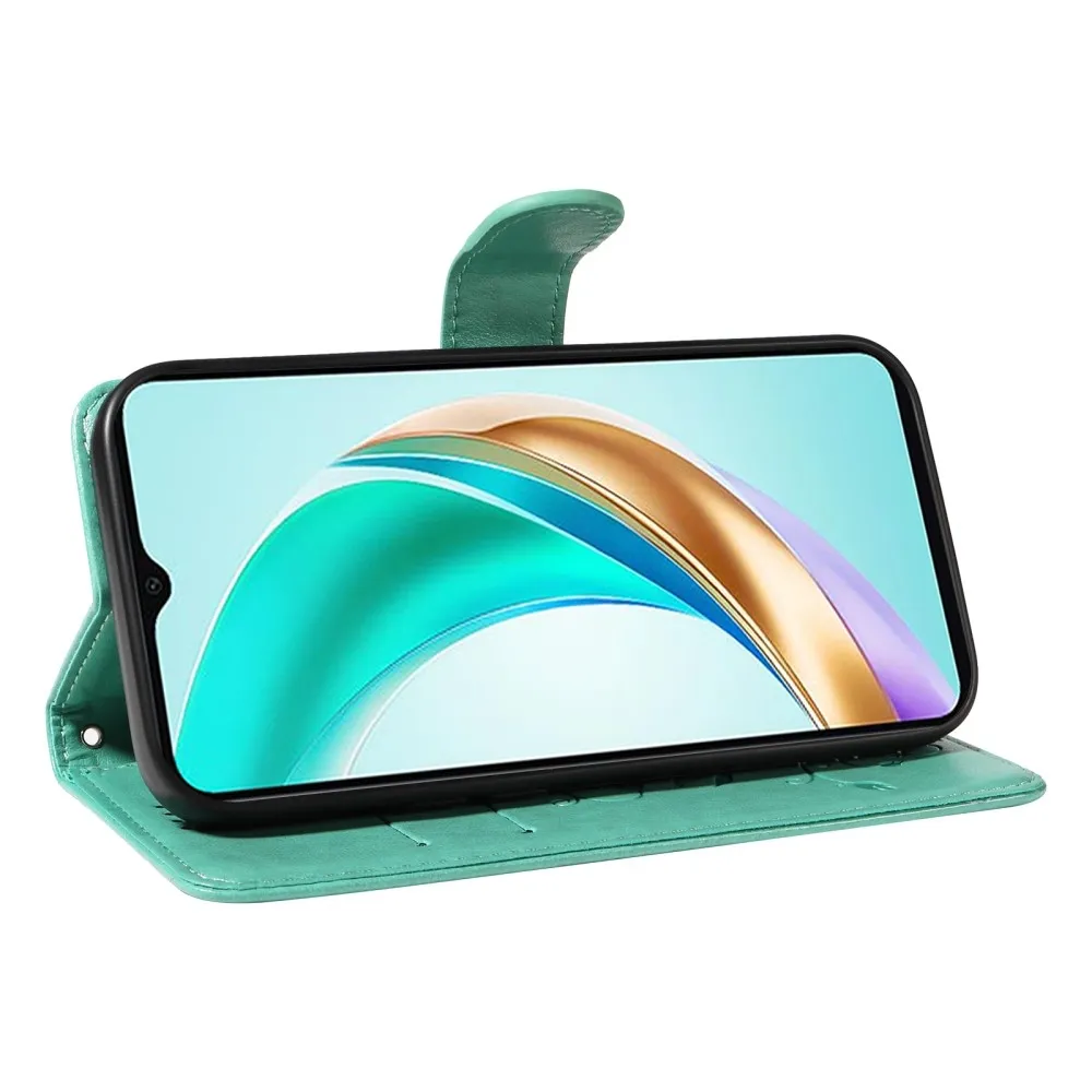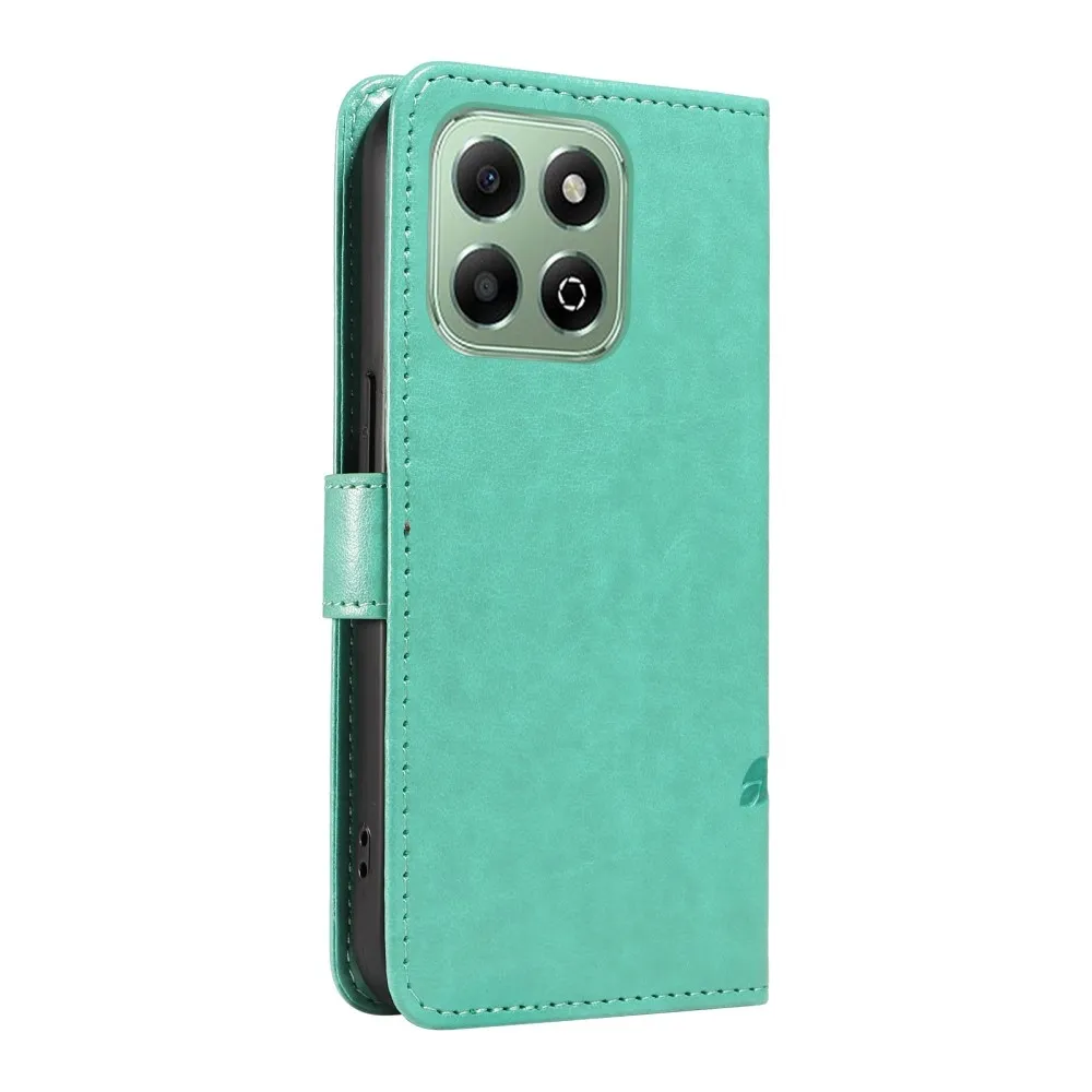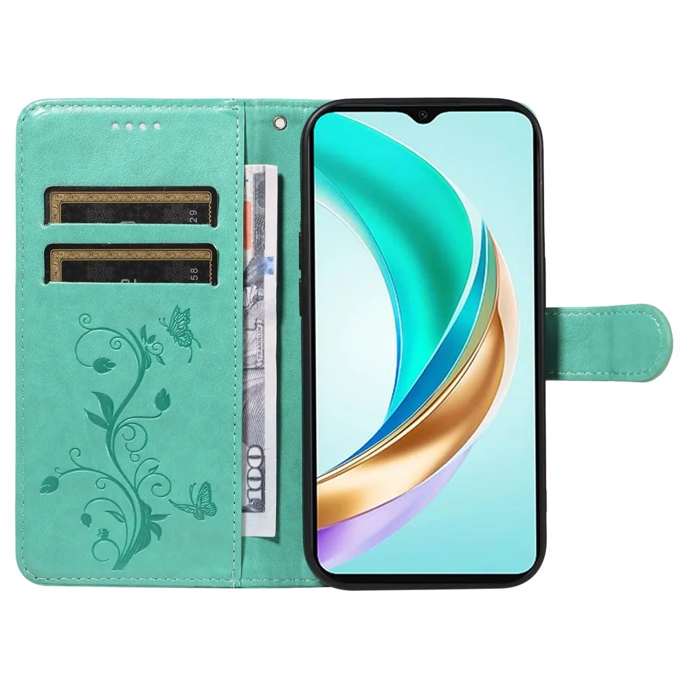 Kék-zöld pénztárca tok Virágos a Honor X6b számára