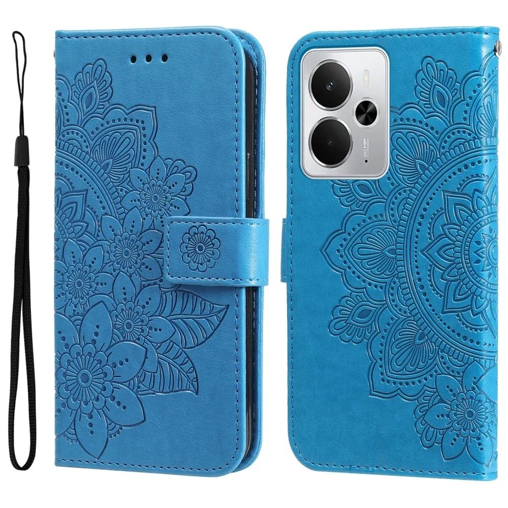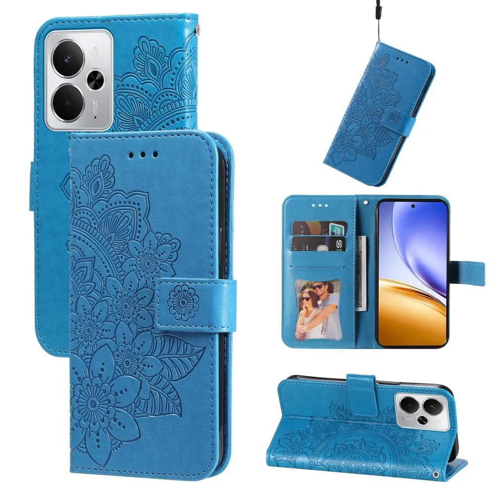 Kék virágos pénztárca tok Realme 14 5G mobiltelefonhoz