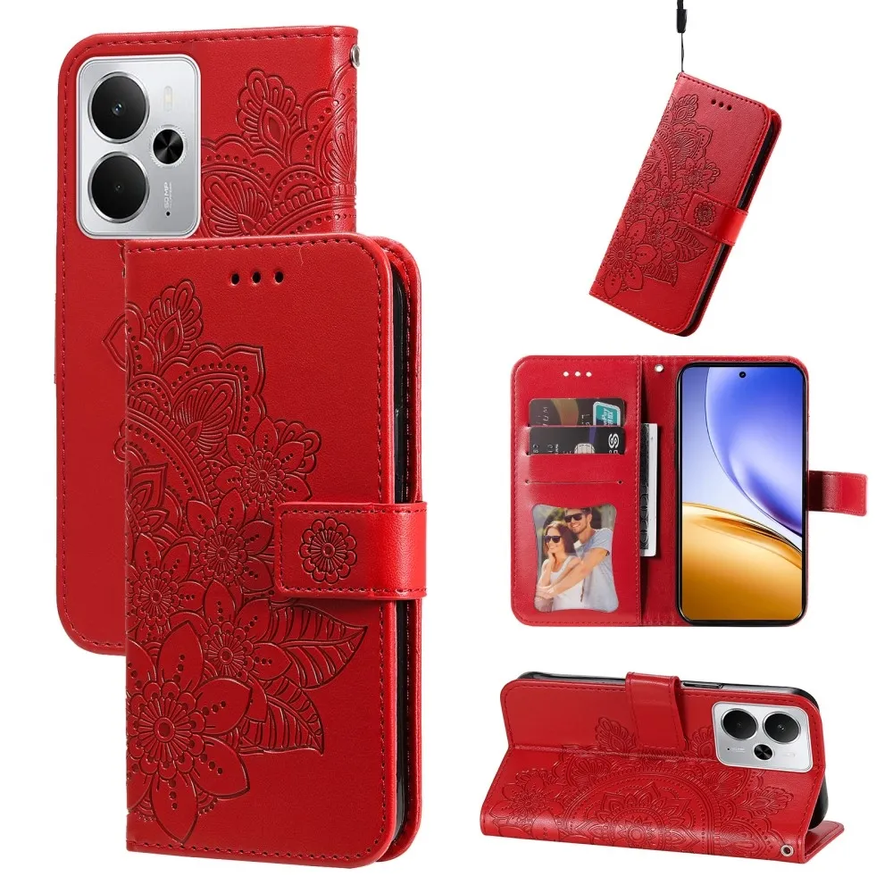Piros virágos pénztárca tok Realme 14 5G mobiltelefonhoz