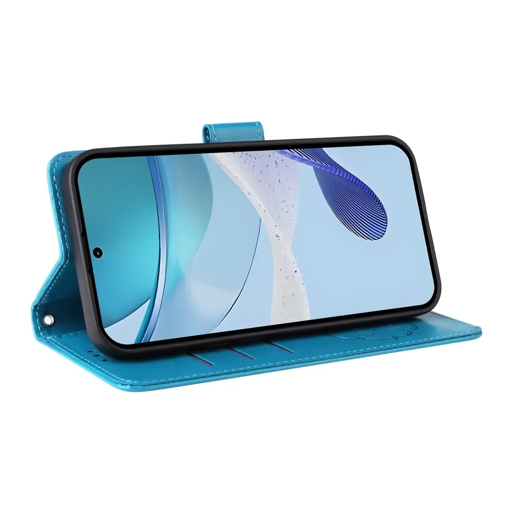 Virágos könyvtáska a Realme 14x 5G/Realme C75 készülékhez - kék