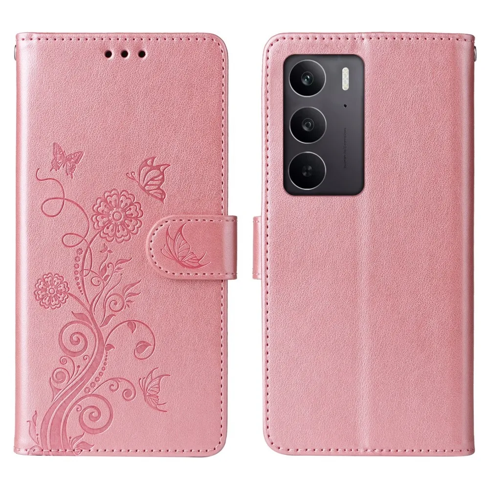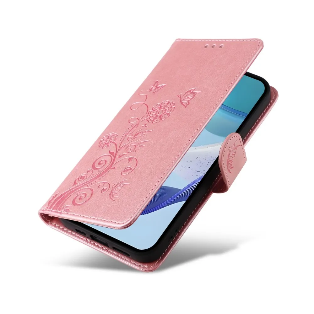 Virágos könyvtáska a Realme 14x 5G/Realme C75 készülékhez - rózsaszín