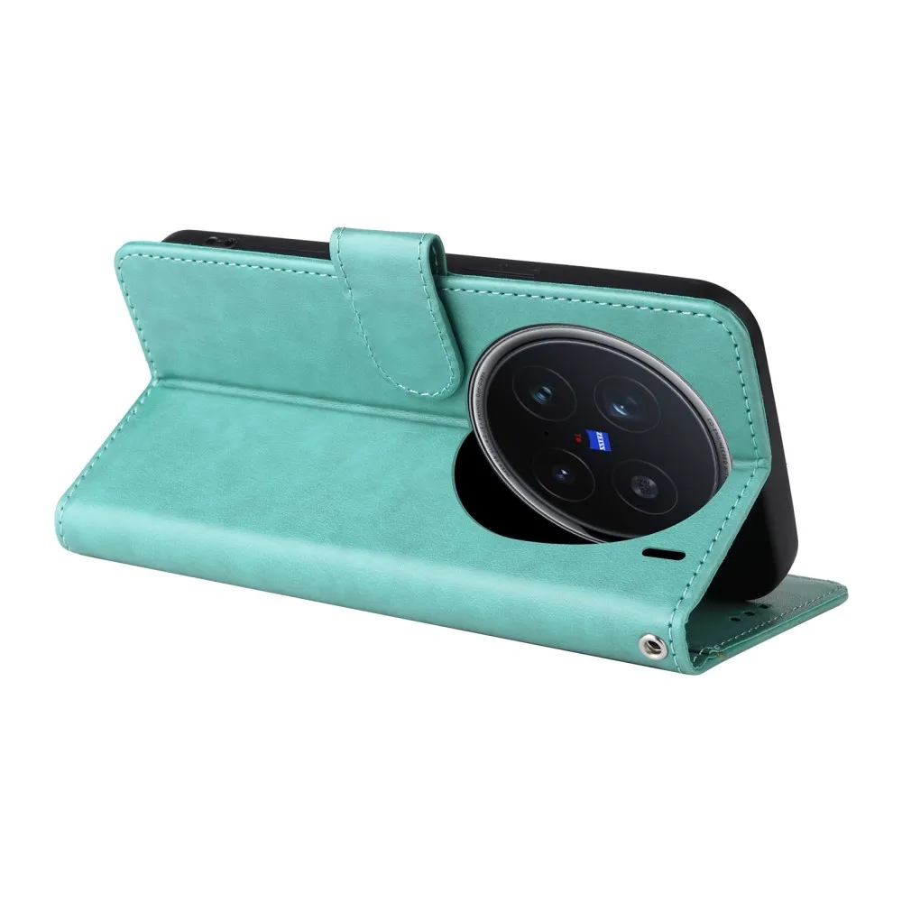 Kék-zöld virágos pénztárca tok a Vivo X200 Pro 5G számára