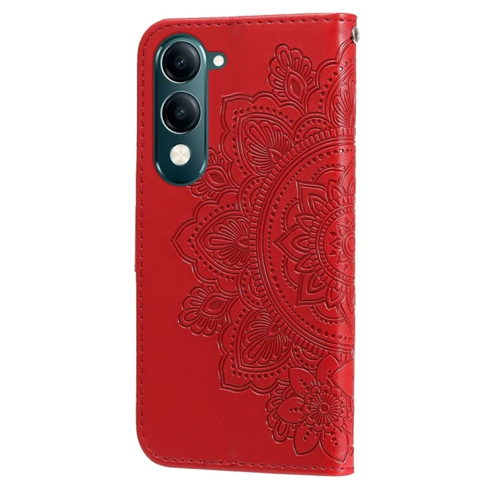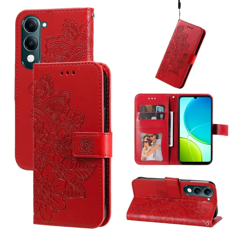 Piros virágos pénztárca tok a Vivo Y29s 5G-hez